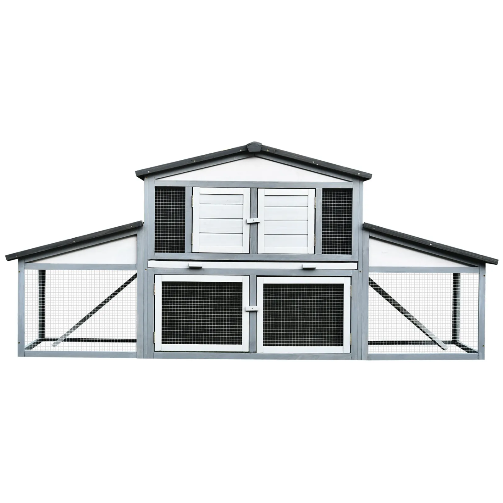 Outdoor Rabbit Hutch in Wood and Metal, Cage for 2-3 Rabbits or Rodents, Grey and White 225x70x100cm