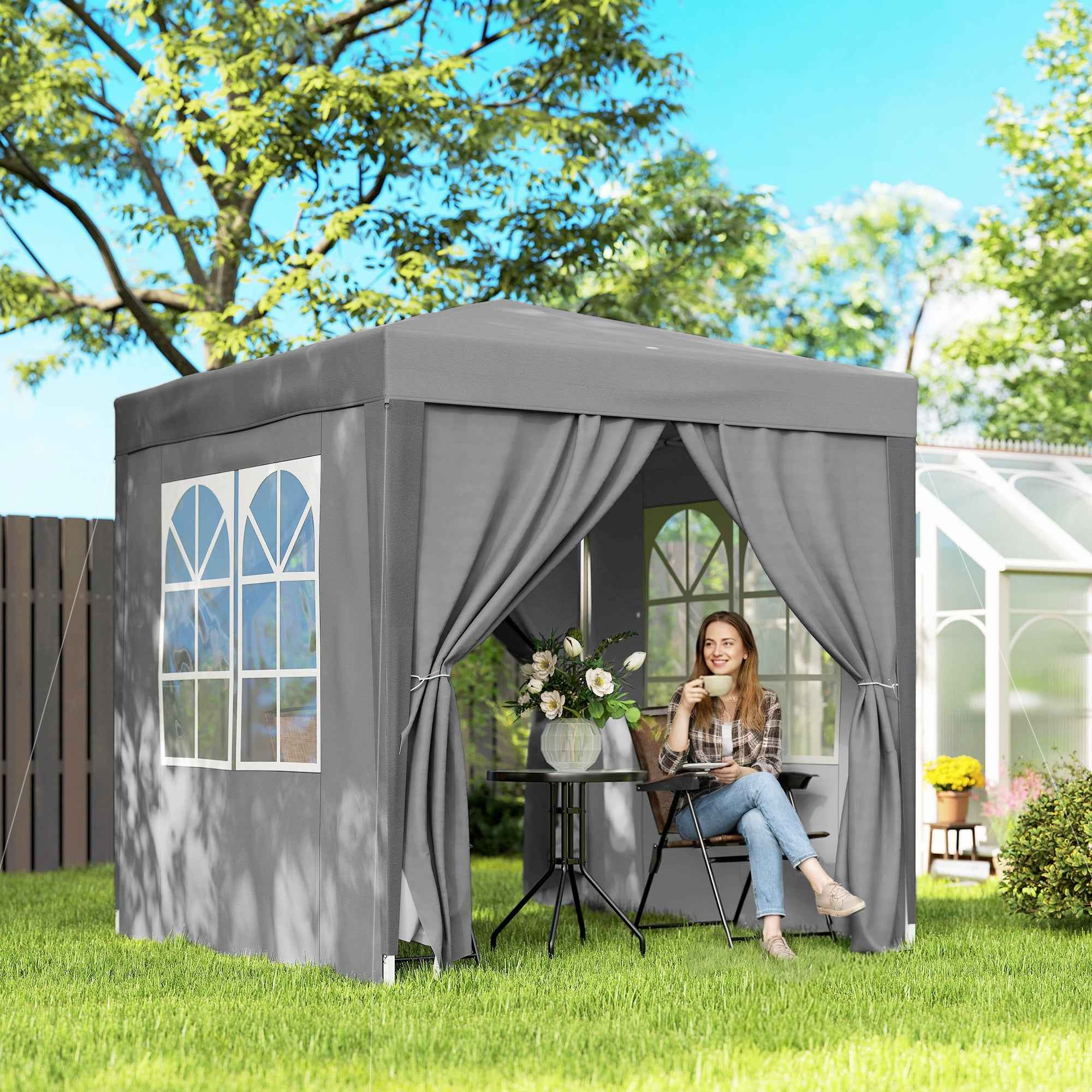 Outsunny 2x2m Folding Gazebo with 4 Removable Metal and Polyester Walls, Grey