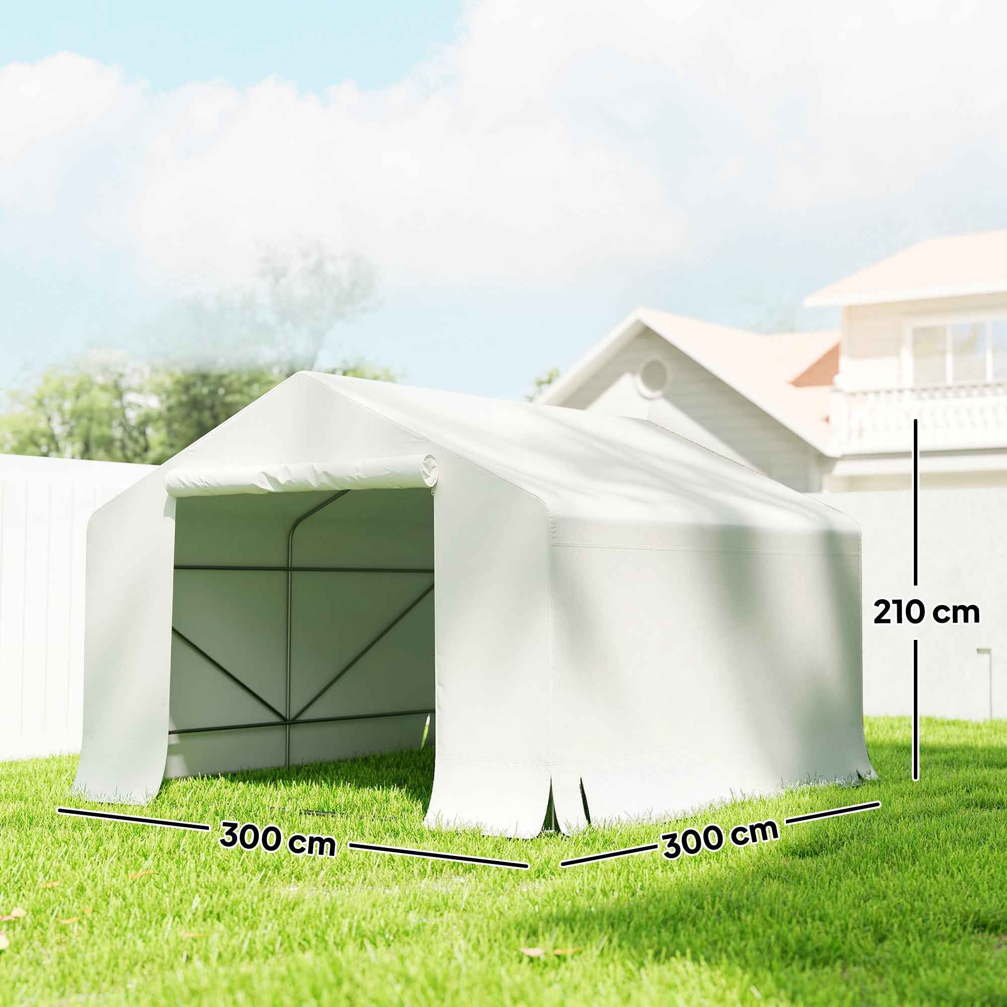 Outsunny 3x3m Waterproof Garden Shed and Garage Tent with Roll-Up Door, Metal and PE, White