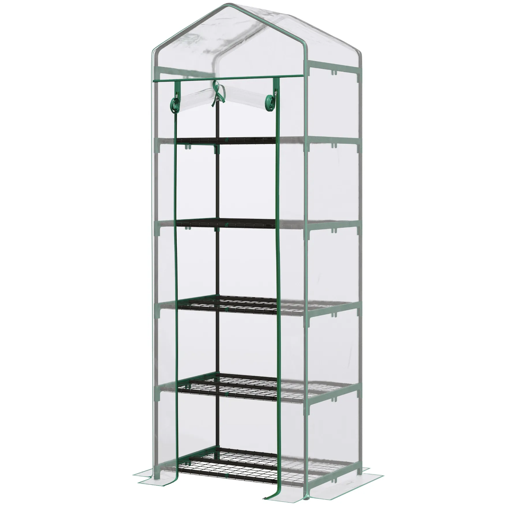 Looking for a small greenhouse for your garden or terrace? The Outsunny mini greenhouse is the perfect choice for a compact space to protect your plants. It features 5 shelves and a PVC cover that allows you to keep an eye on your plants. This garden greenhouse is the perfect choice to satisfy your gardening needs!