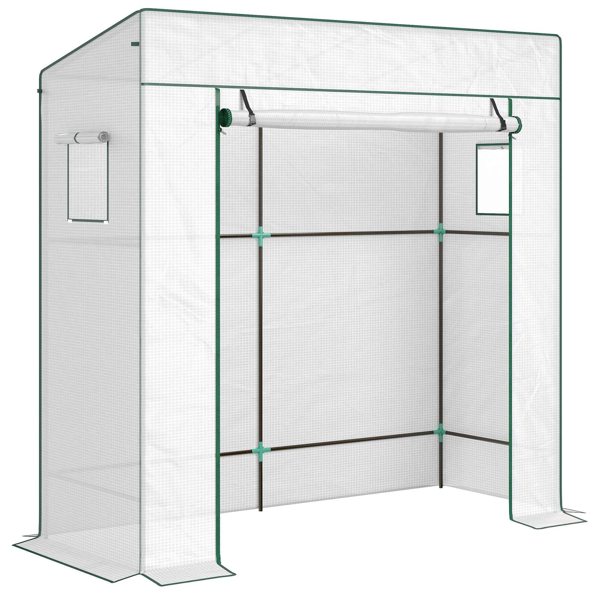 Outsunny Greenhouse for Plants with 2 Side Mesh Windows and Roller Door, in PE and Steel, 196x77x197 cm, White