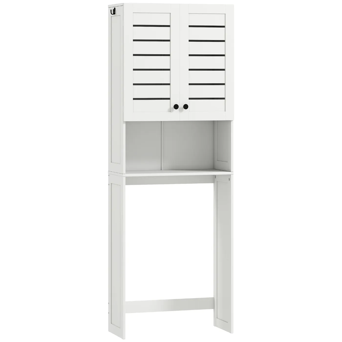 Over Toilet Cabinet with 2 Doors and Open Shelf, White Wood, 67×31.5×190 cm