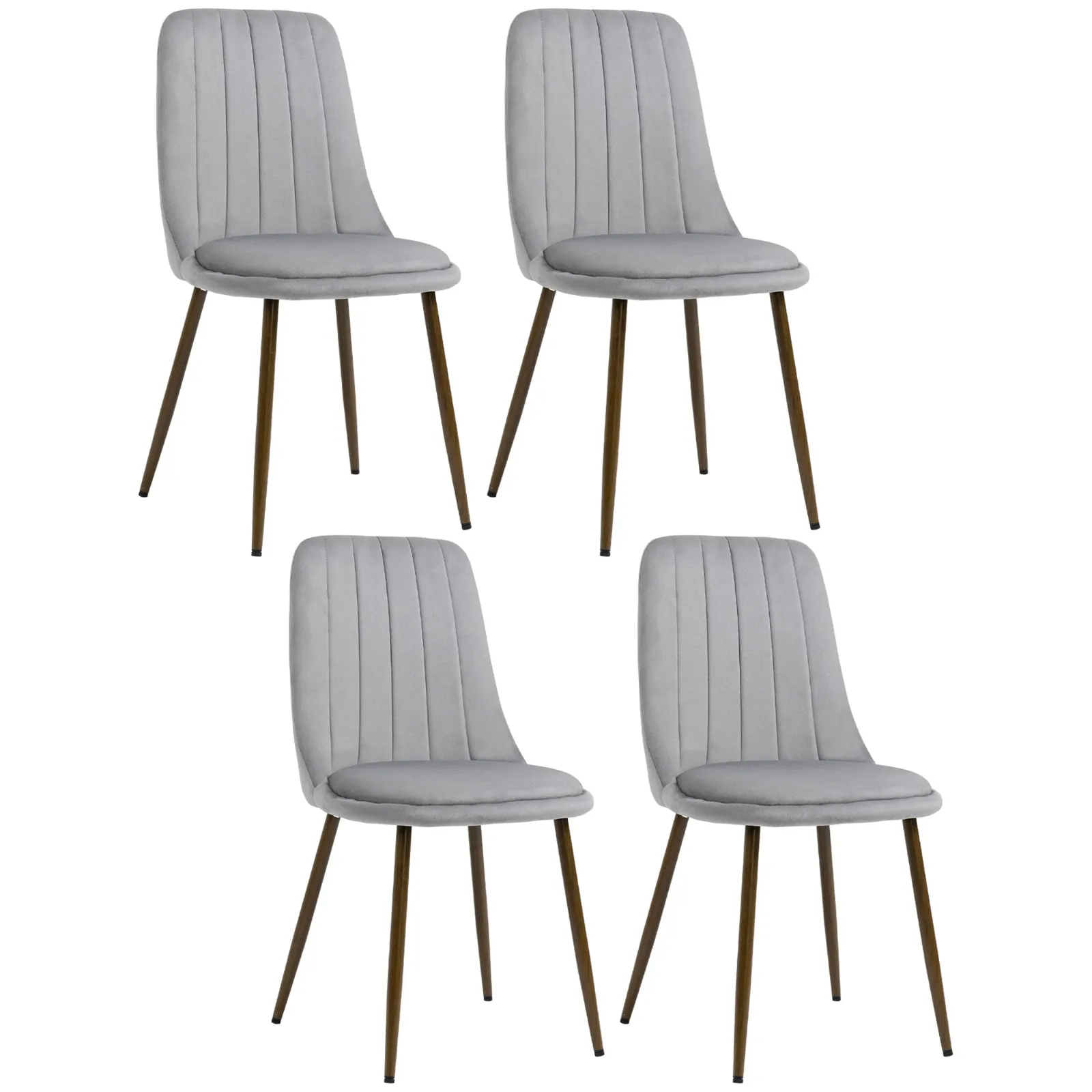 - MODERN STYLE: These upholstered chairs feature an attractive channel pattern on the backrest and wooden-covered steel legs to create a contemporary style that is ideal for home decor. Thanks to the armless design, these chairs can be placed under the dining table to save space when not in use.