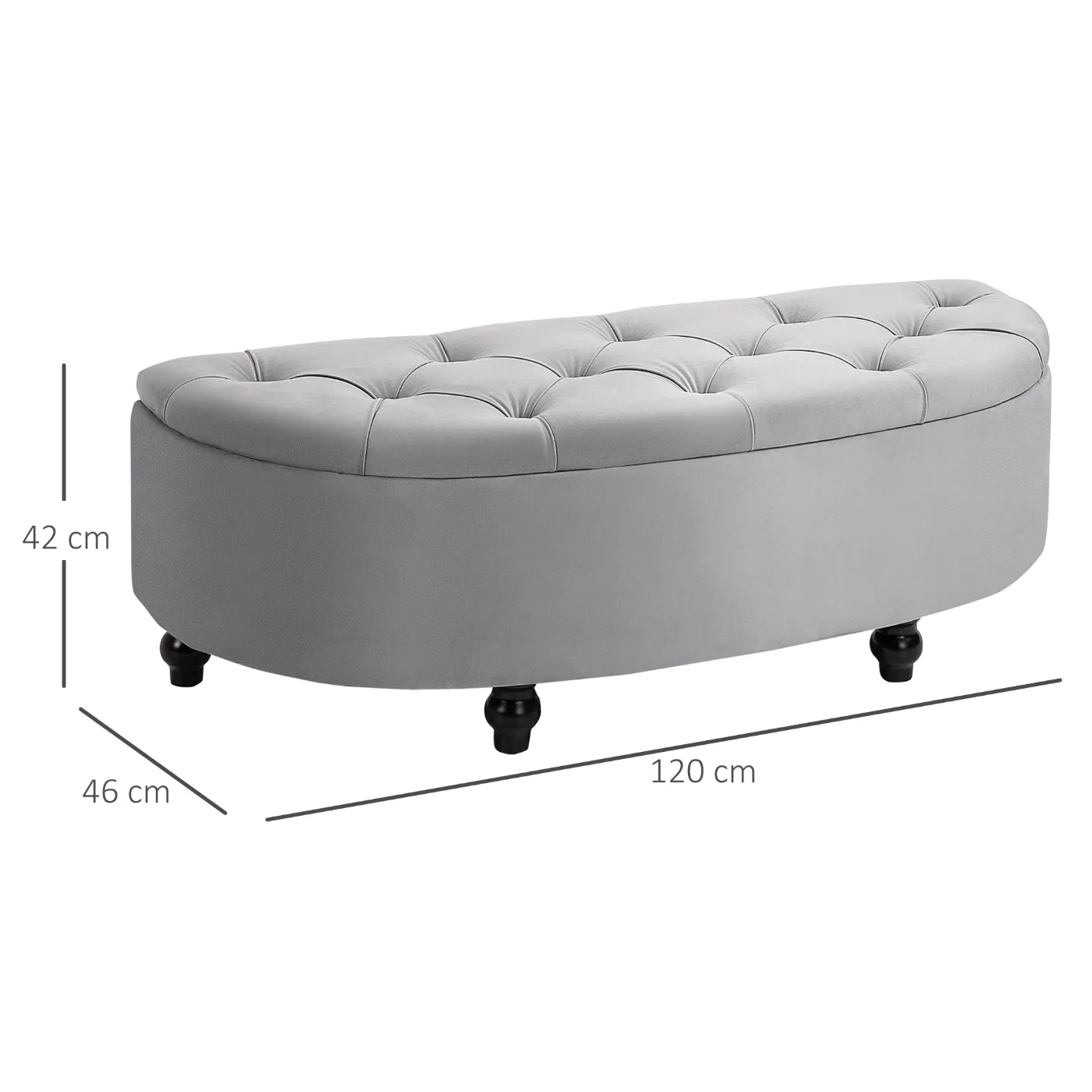 - CLASSIC CHIC STYLE: The semicircular tufted storage bench in light gray velvet has a classic chic and refined style. Ideal for any interior space, such as the living room, bedroom, or walk-in closet.