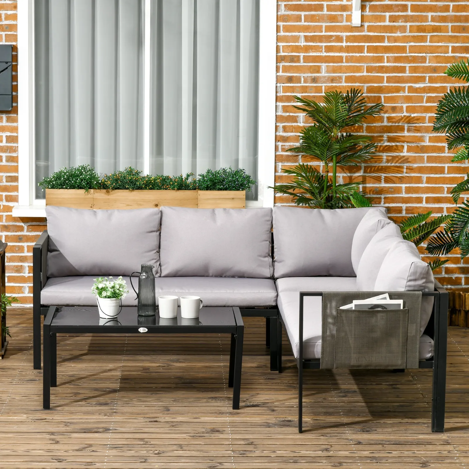 - 4 PIECES: This steel garden furniture set consists of two 2-seater sofas, a corner chair and a matching coffee table, making it an ideal addition to gardens, patios, balconies and other outdoor areas. A great way to make your guests feel at home.