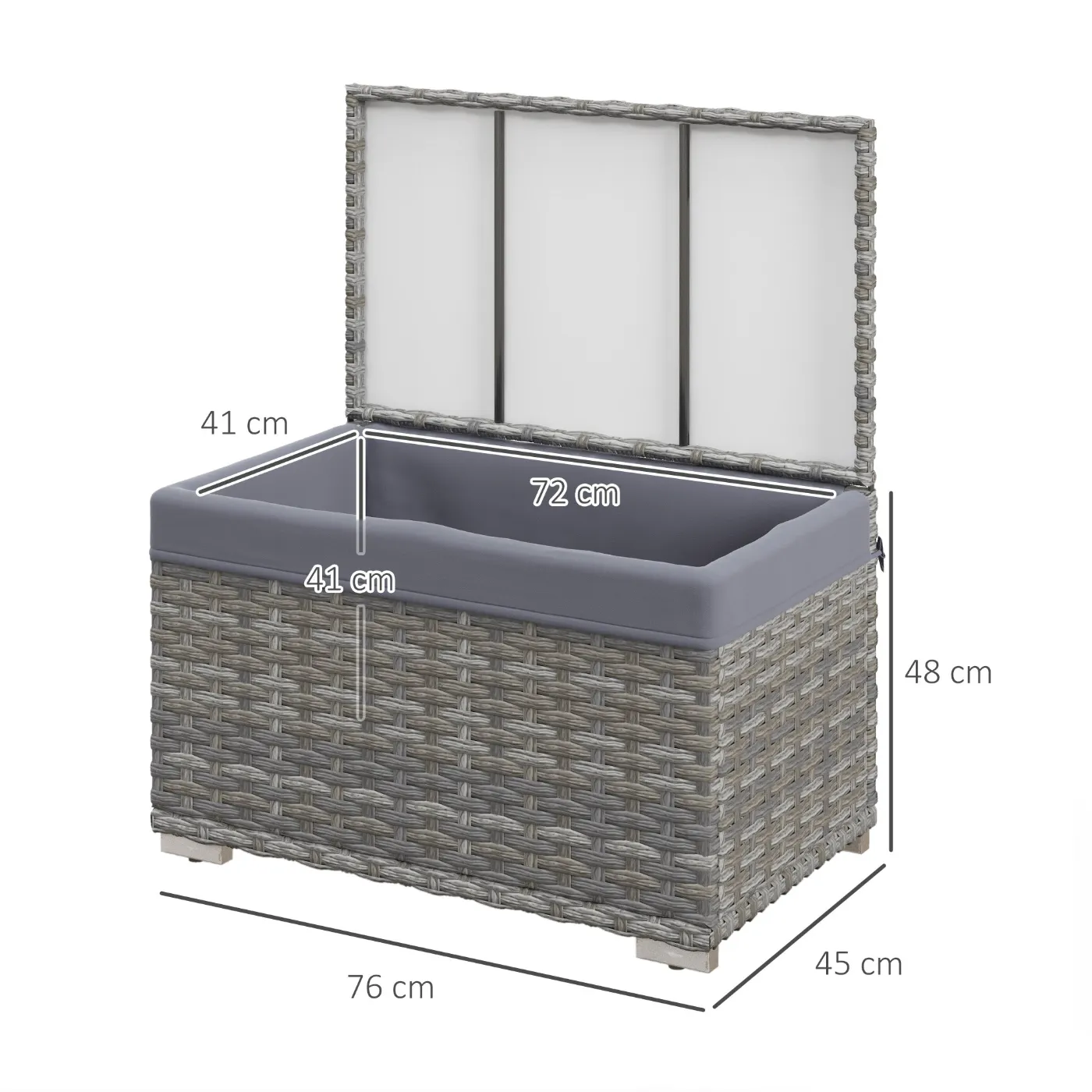 - RATTAN GARDEN BENCH: Find a place for everything in this outdoor storage bench, perfect for storing garden tools, pool accessories and more