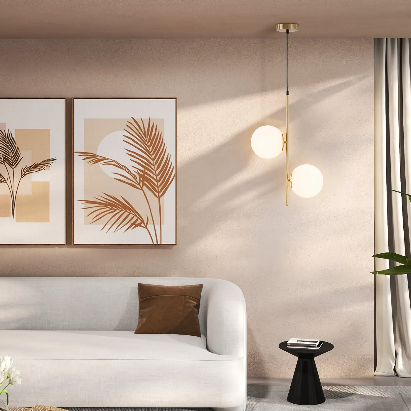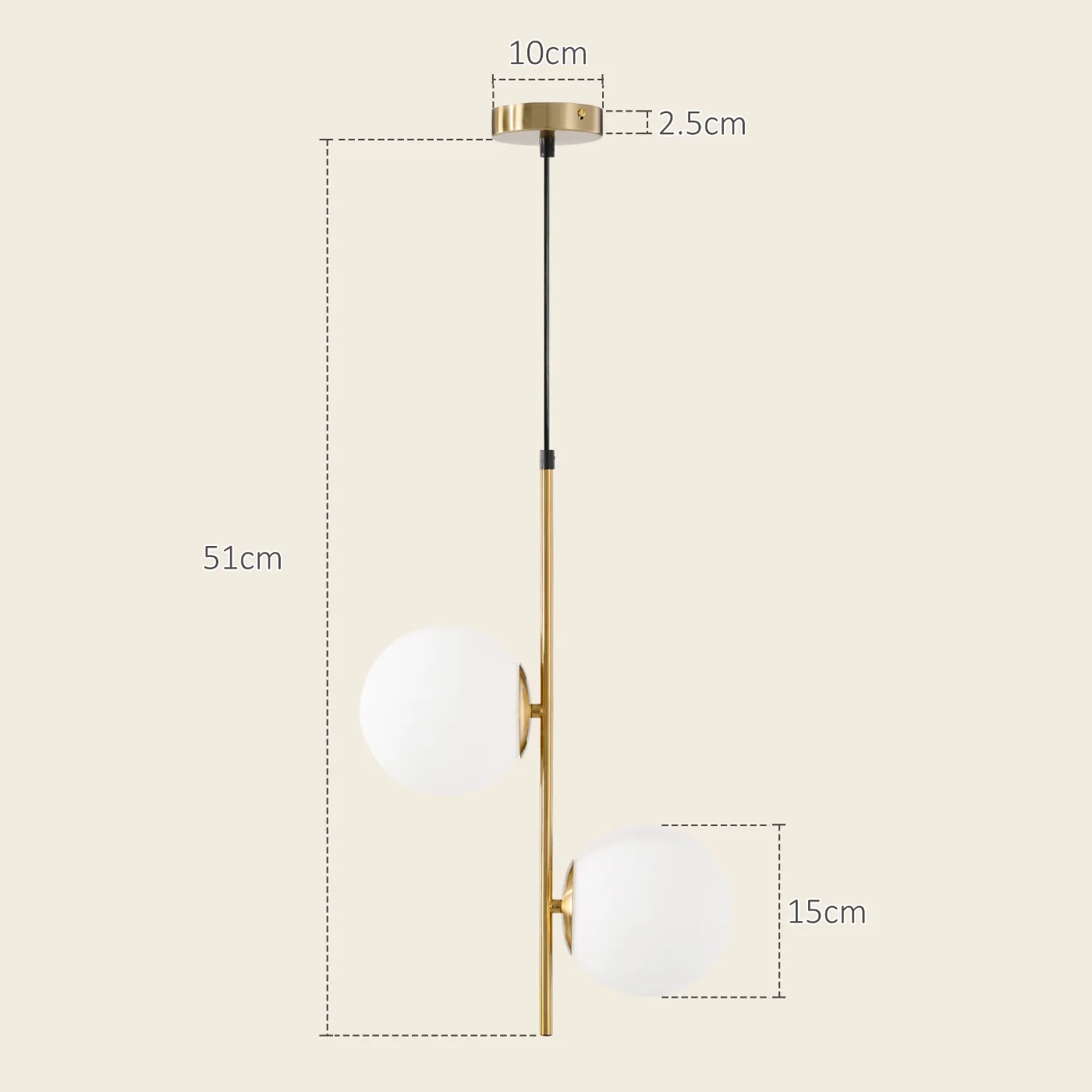 - CONTEMPORARY ELEGANCE: Featuring a modern style with a refined gold finish and two glass spheres, our pendant lamp enriches any environment with the right elegance