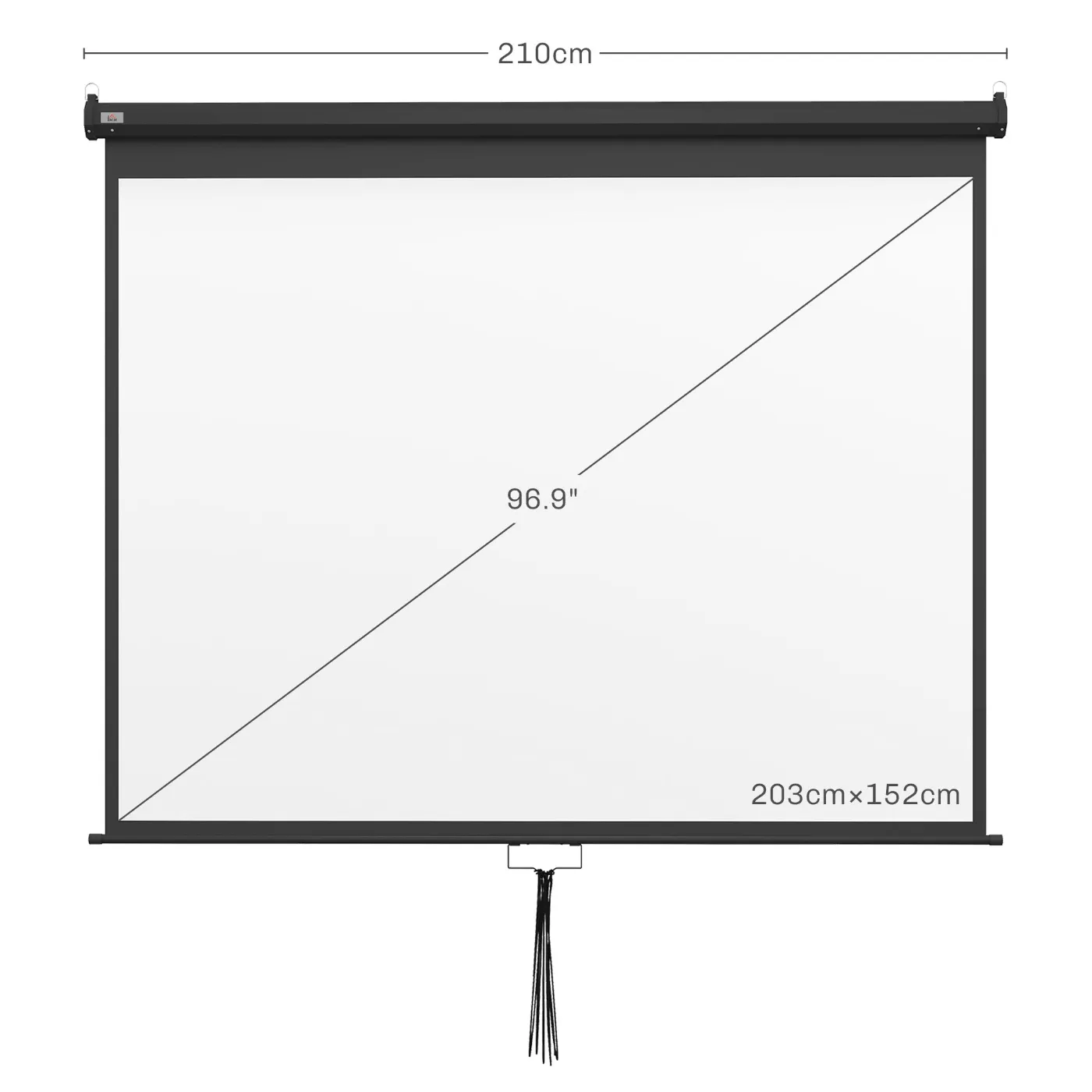 Projector Screen 100″ Adjustable with Ceiling and Wall Mount, 4:3 Format, 203x152cm, Black and White