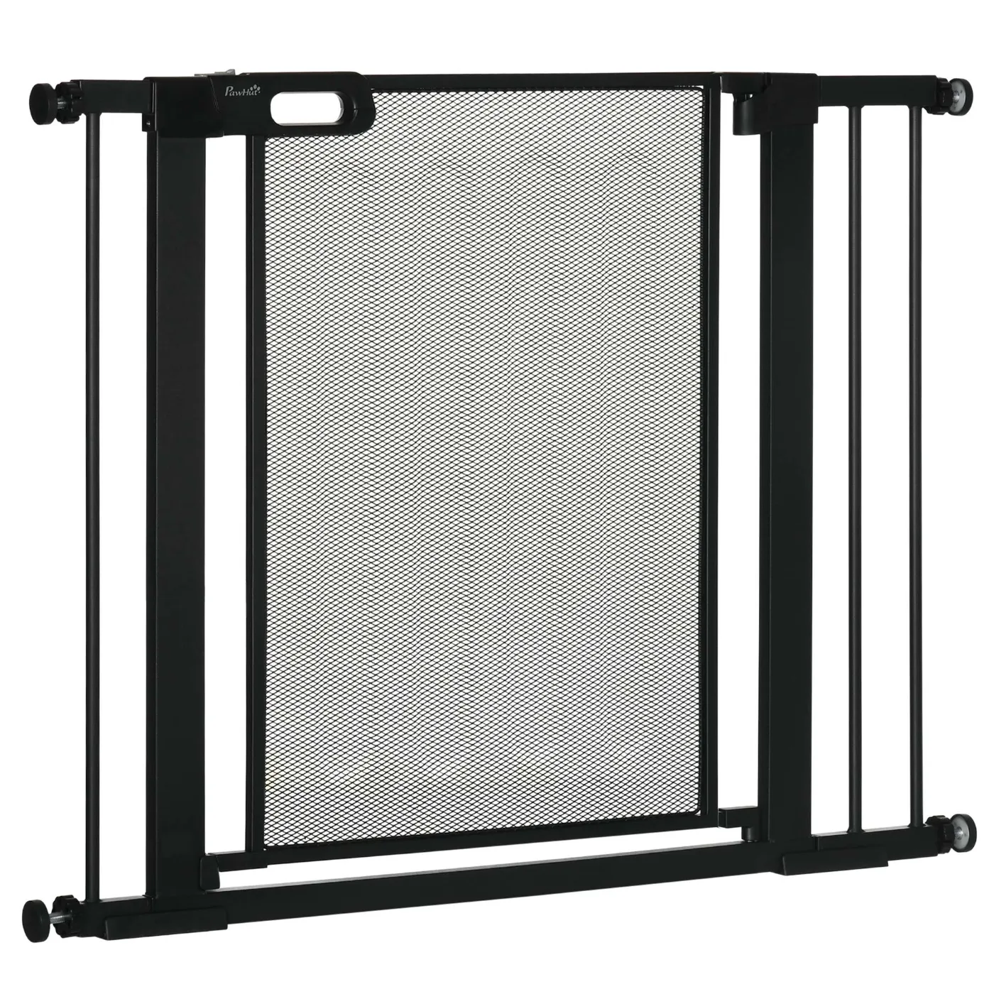 - NO-DRILL INSTALLATION: Thanks to the use of the pressure system, you will not need to use a drill to attach the dog gate to the wall. DIMENSIONS: Overall dimensions: 75-103W x 76H cm