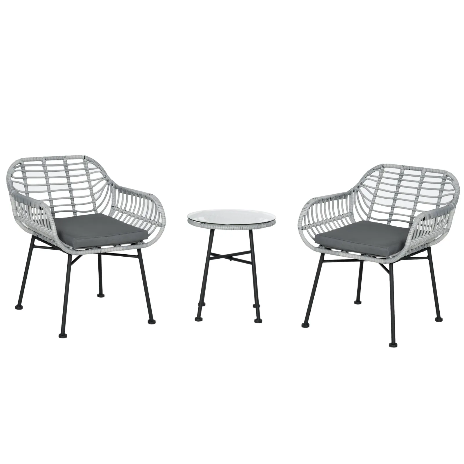 The Outsunny garden furniture set accompanies you at any moment of outdoor relaxation. Consisting of 2 chairs and combined coffee table, style door and practicality thanks to the minimalist lines and the Rattan peel coating. The round table has an elegant support top in tempered glass, easy to clean and resistant. Thanks to the quality of the materials, this set in Rattan will last for a long time in time.