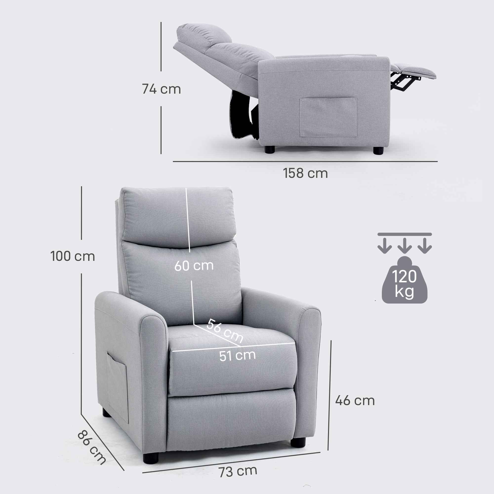 - • The breathable linen-look fabric of the recliner creates a cozy and comfortable atmosphere