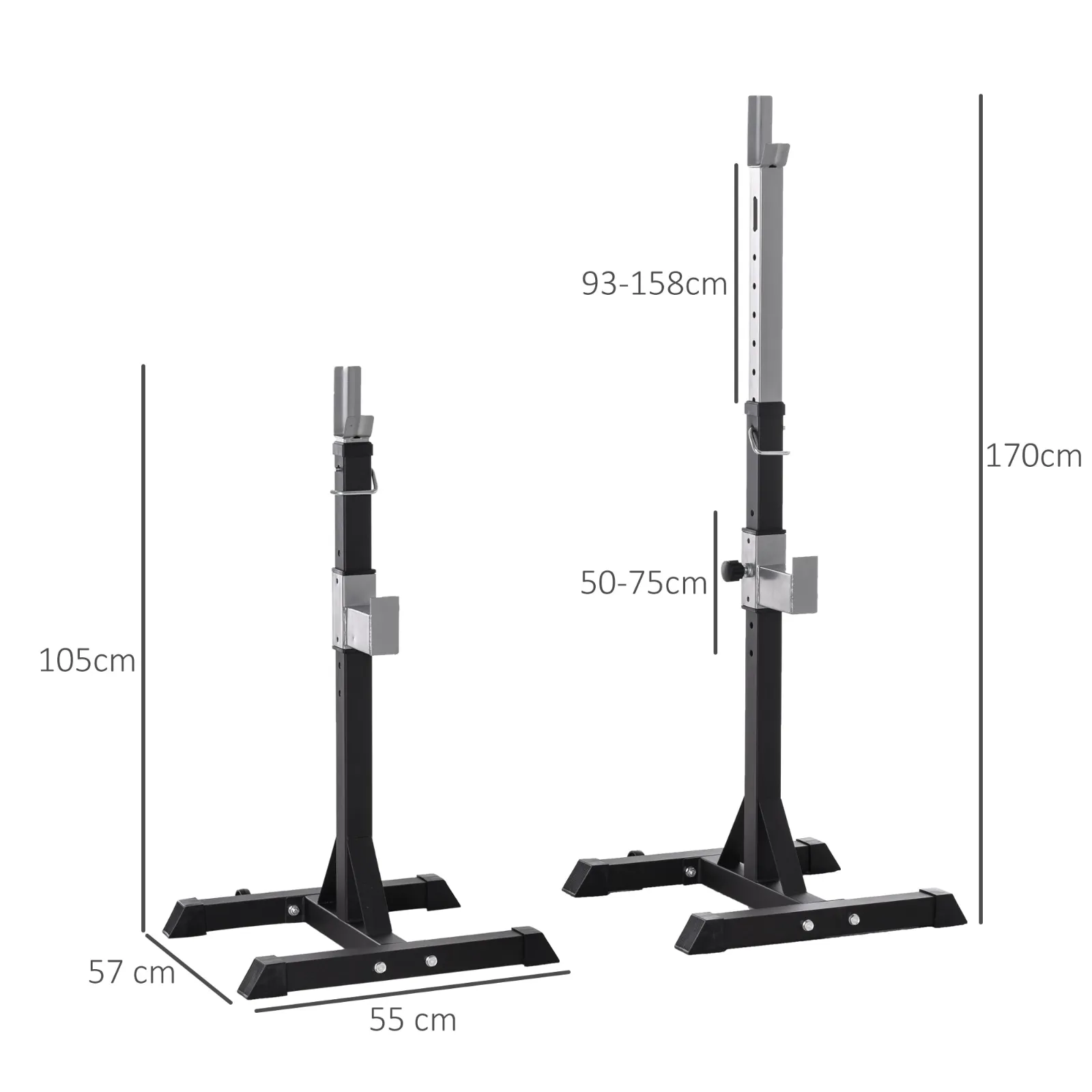 Do you want to improve your strength and physical fitness? Try the Homcom barbell rack, you can use it in any environment! It is equipped with 2 hooks to support 2 barbells simultaneously and are adjustable in height. The solid H -shaped base offers maximum stability to train safely. The non -slip feet make the rocker support more stable and protect the floor from scratches.