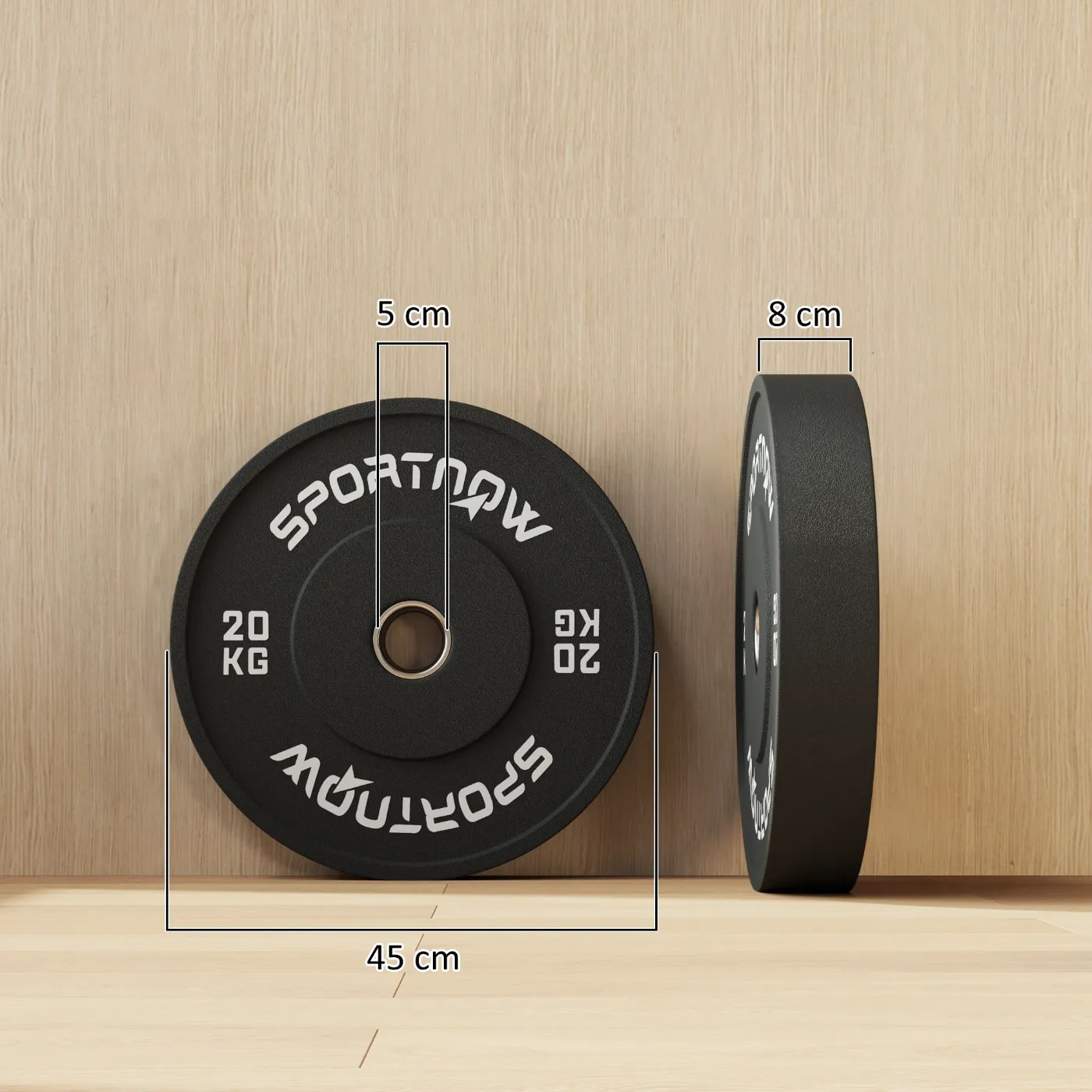 - DIMENSIONS: Overall dimensions: Ø45 x 8A cm. The set consists of two 20 kg Olympic weight discs