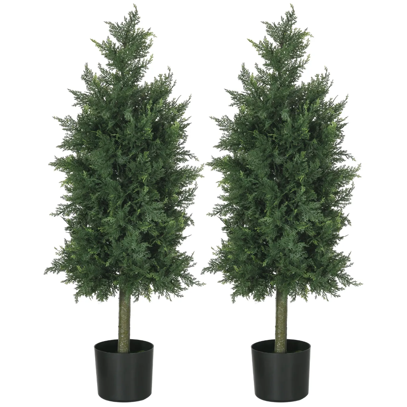 - DOUBLE THE GREEN: This set includes two artificial cedar plants with vivid leaves and realistic trunks, ideal for adding symmetrical beauty to any home space, whether indoors or out.