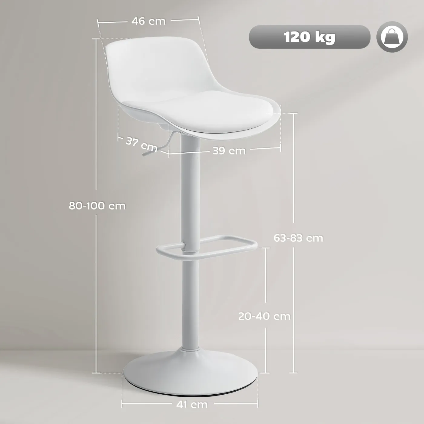 • ADJUSTABLE: Featuring 360-degree rotation and an adjustable seat height from 63 to 83 cm, these high stools are perfectly suited to different situations, from a casual aperitif to a quick lunch