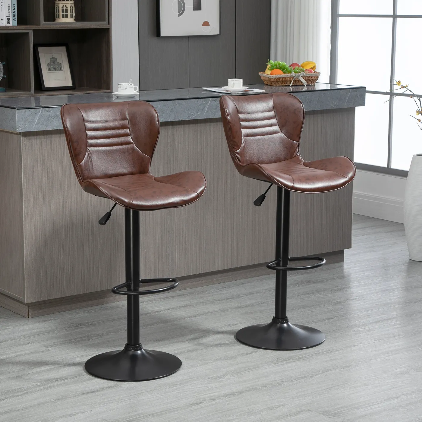 - SWIVEL SEAT AND ADJUSTABLE HEIGHT: The height-adjustable seat fits perfectly on any counter or high table. The high stools offer a footrest and 360° rotatable seat, offering maximum freedom of movement