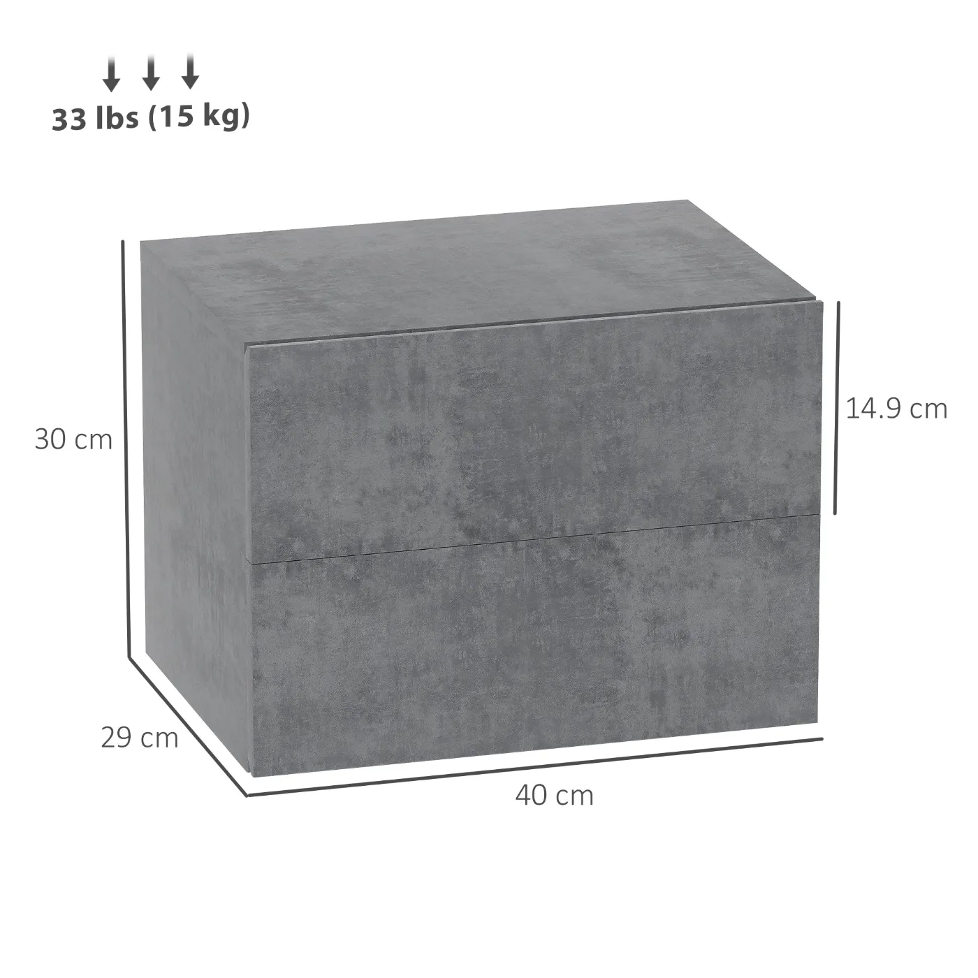 - DIMENSIONS: Overall Dimensions: 40W x 29D x 30H cm. Weight Capacity: 15 kg. Assembly Required