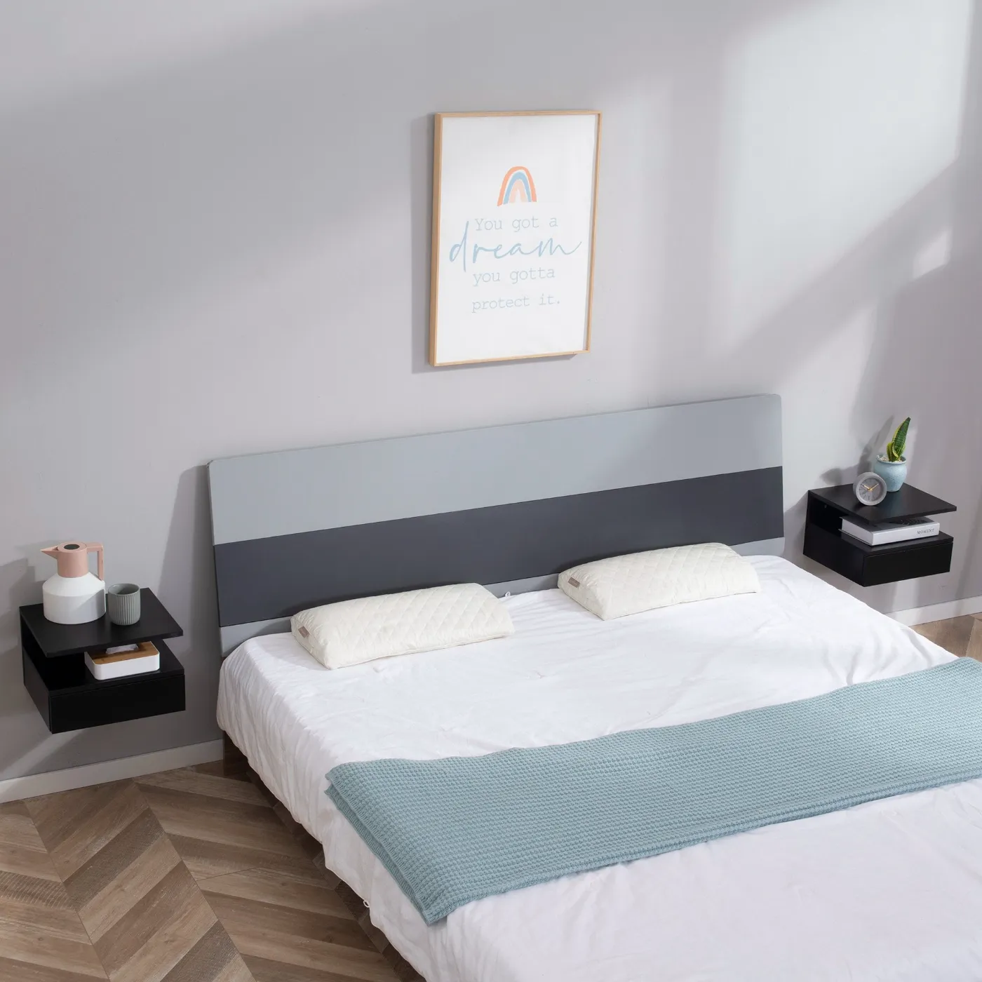- SET OF 2: This pair of floating nightstands has a modern and minimalist design, which perfectly matches different styles of furniture.
