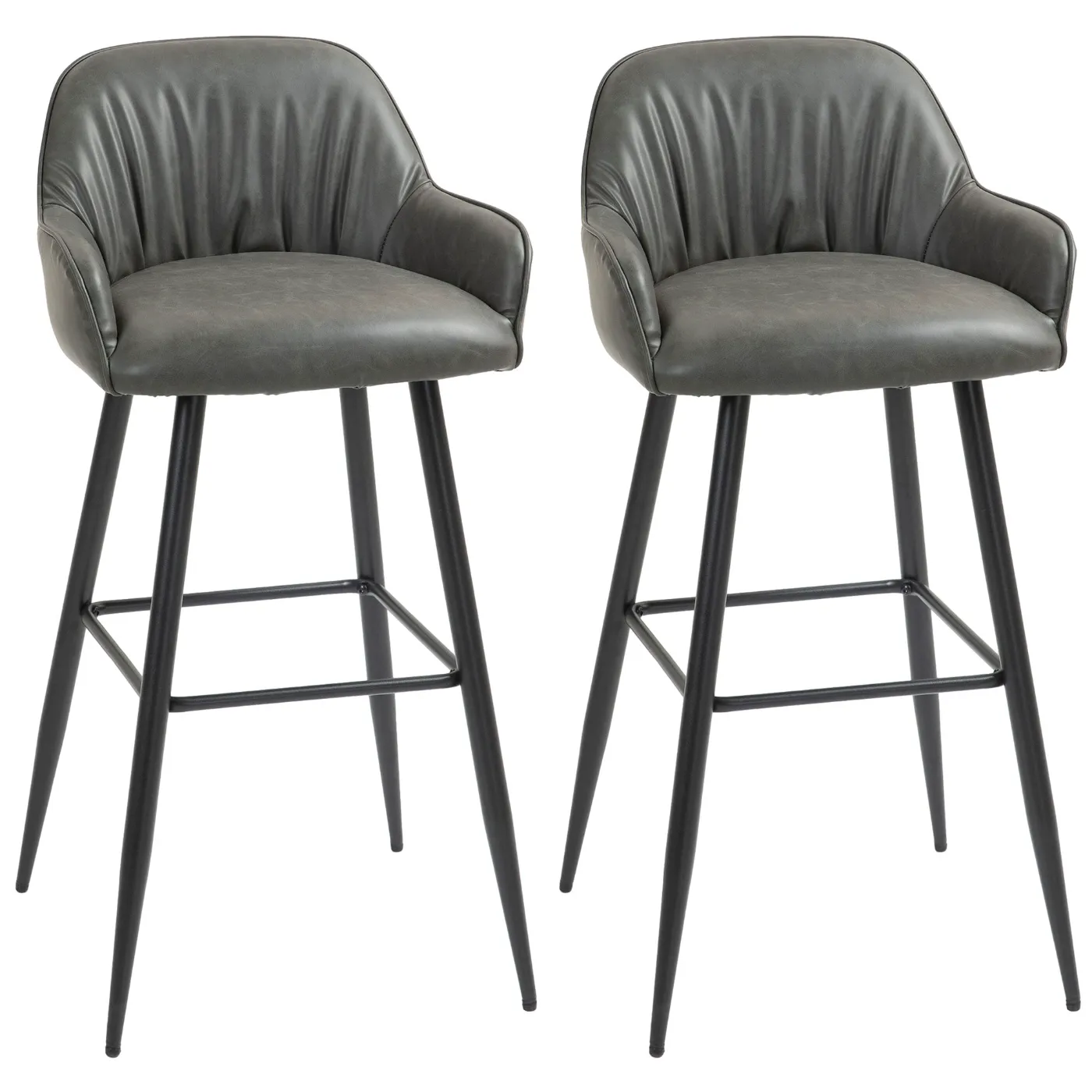 - SET OF 2 HIGH STOOLS: This pair of bar stools features a refined design with PU faux leather upholstery, to elegantly enrich any space in your home and in your premises.