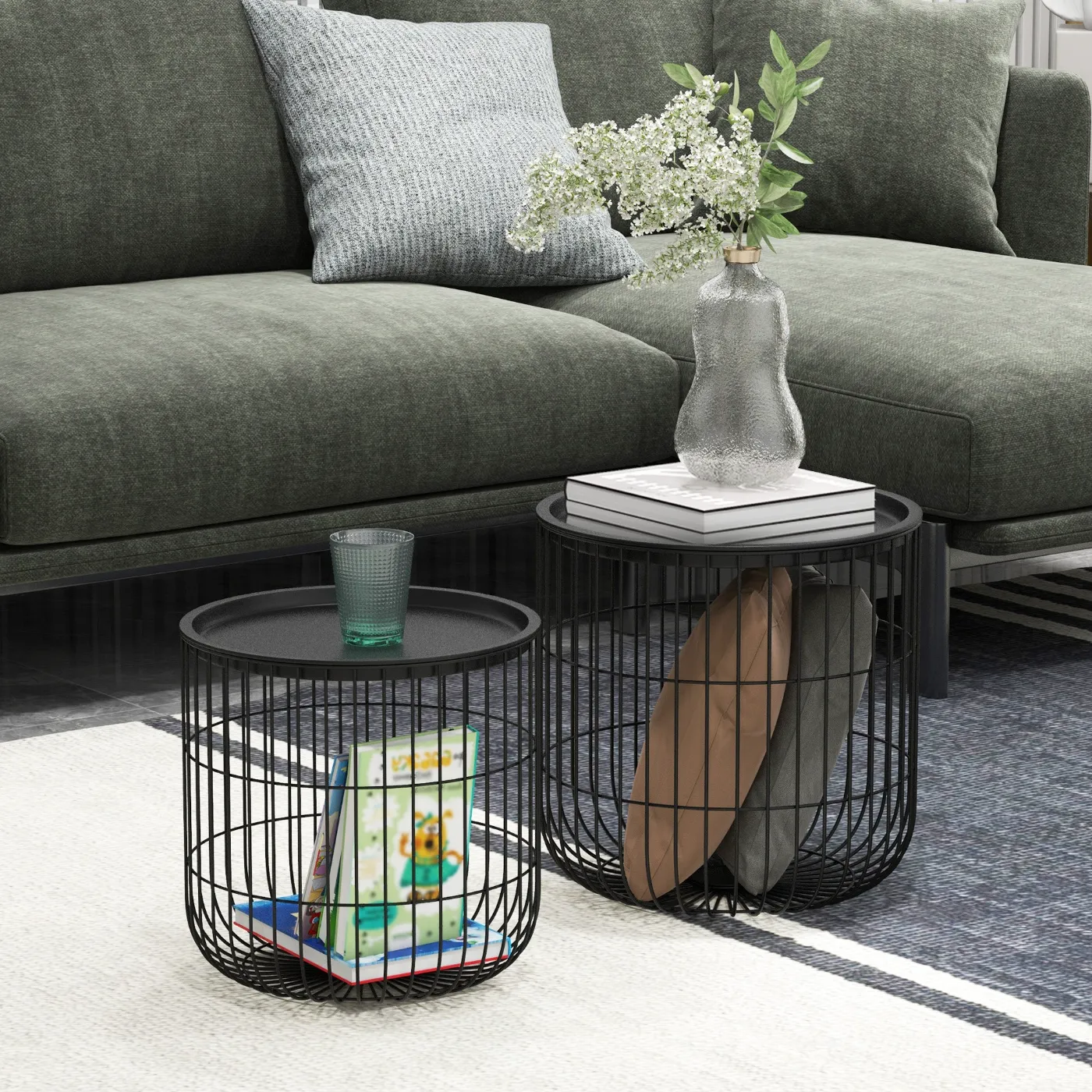 - DIMENSIONS: Overall dimensions: Ø40 x 40H cm (large table), Ø35 x 35H cm (small table). Weight capacity: 10 kg (table top/inner space). No assembly required