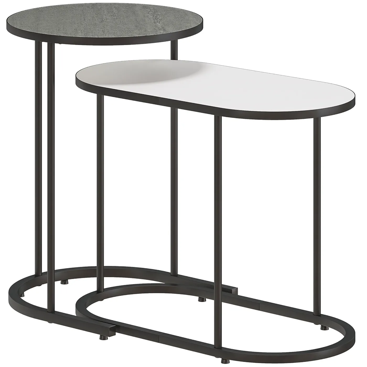 - DIMENSIONS: Overall dimensions: Ø38 cm x 54.5 cm (round table), 58 cm (W x 31 cm x 46.5 cm) (oval table). Weight capacity: 10 kg each. Assembly required.
