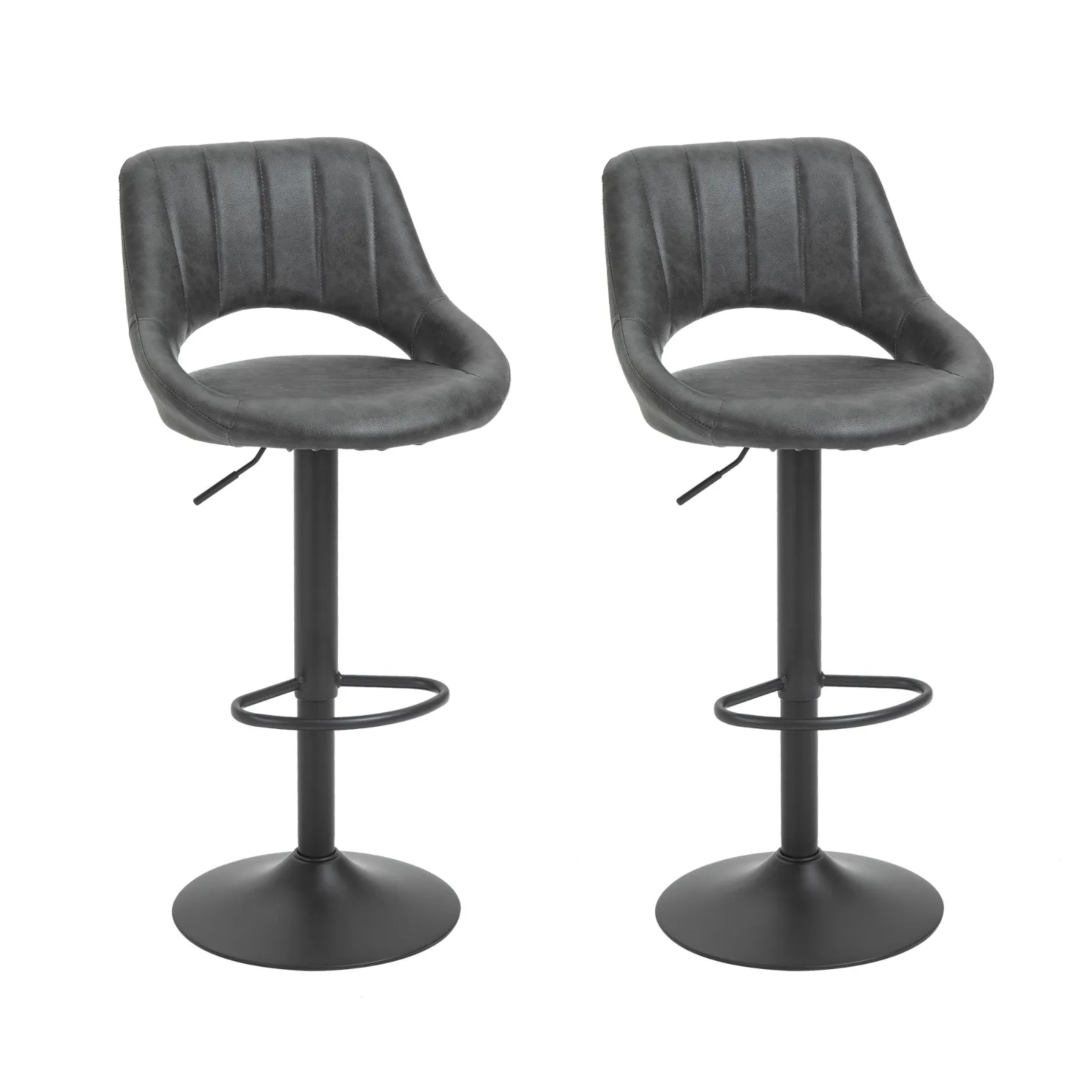 - ADJUSTABLE HEIGHT: These kitchen and bar stools can be adjusted in height to fit your table or counter. The swivel seat provides freedom of movement and the footrest prevents your legs from dangling.