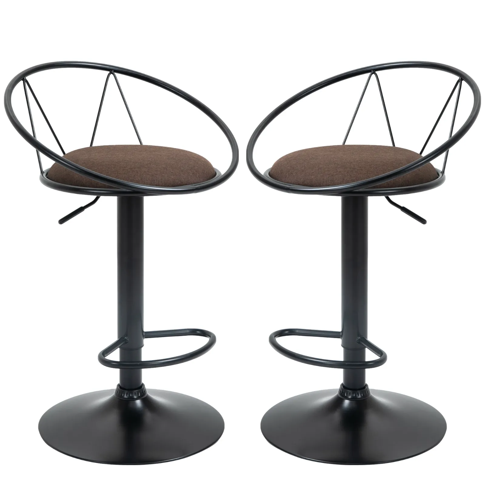 Set of 2 Swivel Bar Stools with Metal Backrest and Footrest, Adjustable Height and Padded Seat for Living Room and Kitchen, Brown 51x46x78-100cm