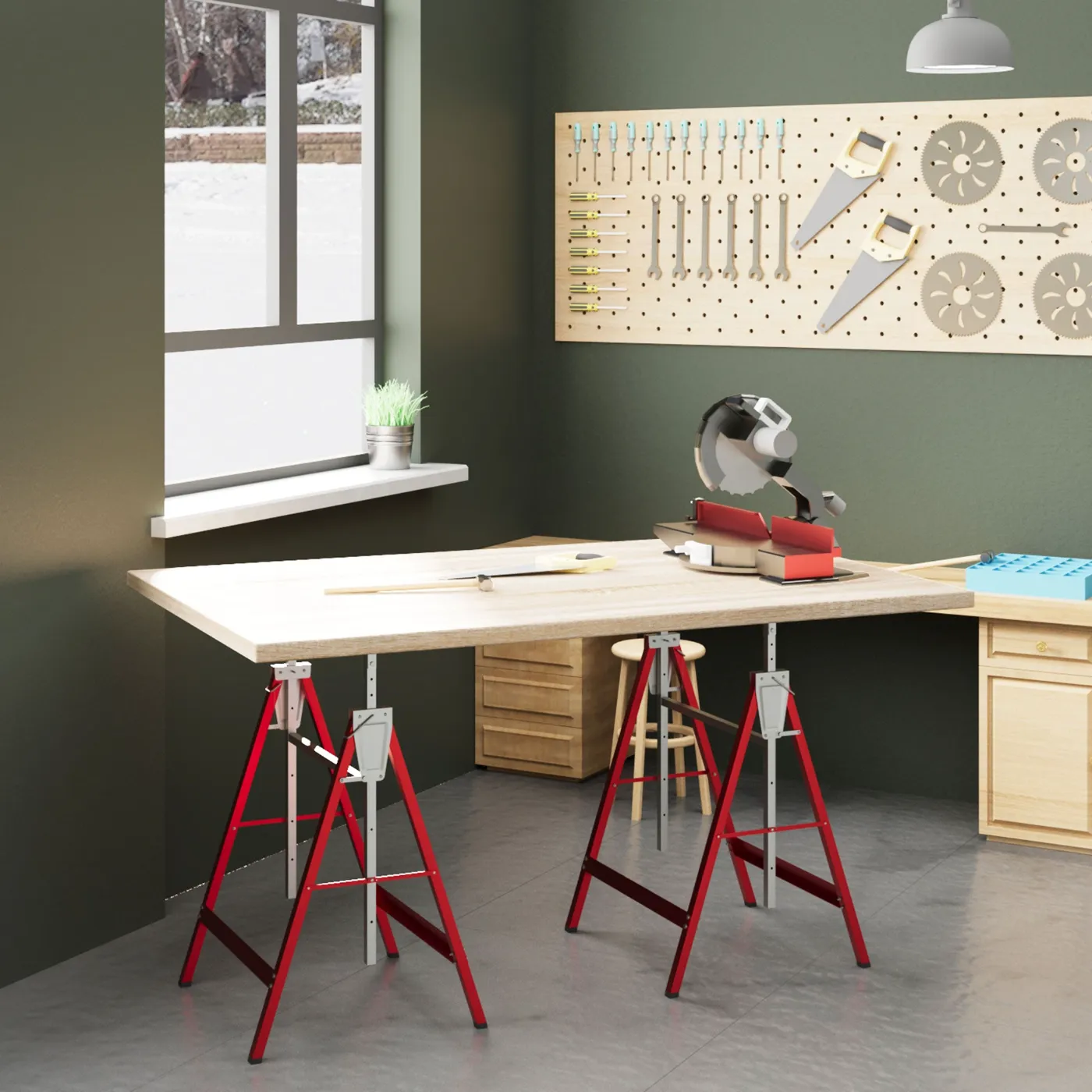 - VERSATILE USE: Each folding sawhorse in the set can be used in a variety of ways. In addition to your garage, it can also be used in your garden, workshop, or warehouse, guaranteeing you great utility.