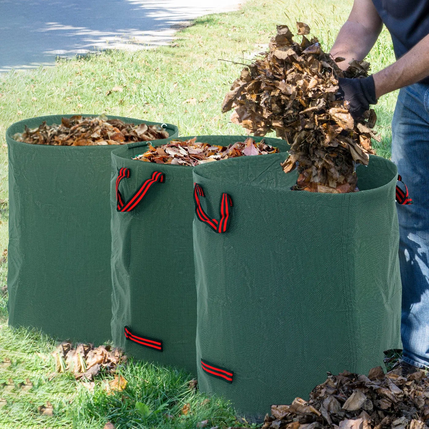 Explore the convenience of cleaning up your outdoors with the Outsunny 3-Piece Garden Waste Bag Set! This trio of large bags, 272 L each, is made of durable and UV-protected polypropylene. With 4 sturdy handles for easy carrying and emptying, our gardening bags are the perfect solution for a tidy garden. They are also foldable, reusable and suitable for holding more than just garden waste! Features: • Set of 3 garden bags, each with a capacity of 272 L • Made from 150 g/㎡ polypropylene, they are lightweight, tear-resistant and water-resistant • 2 top and 2 bottom handles make it easy to carry and empty the garden waste bags • A flexible hoop holds the bag open, making it easy to fill • Garden waste bags foldable and reusable, easy to store in the shed or garage• Suitable for garden waste and other outdoor itemsTechnical data:• Colour: Green• Material: Polypropylene 150 g/㎡• Dimensions: Ø67 x 76H cm• Capacity: 272 L• Weight capacity: 50 kg (per bag)• Note: Avoid leaving these garden bags in the sun for long periodsPackage contents:• 3 x Bags for garden waste• 3 x Plastic circle• 1 x Manual