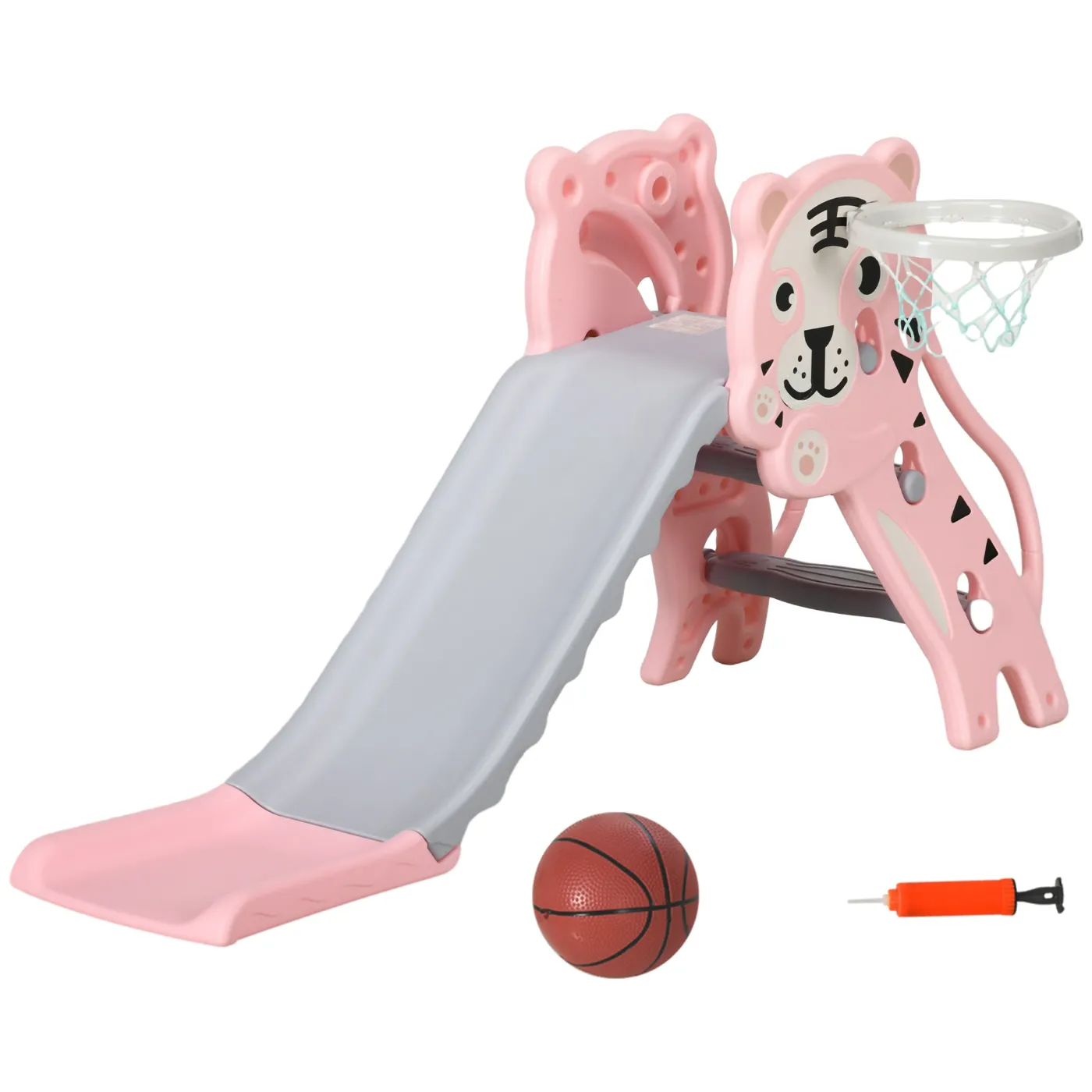 - • 3-in-1 design: kids slide, ladder and basketball hoop
