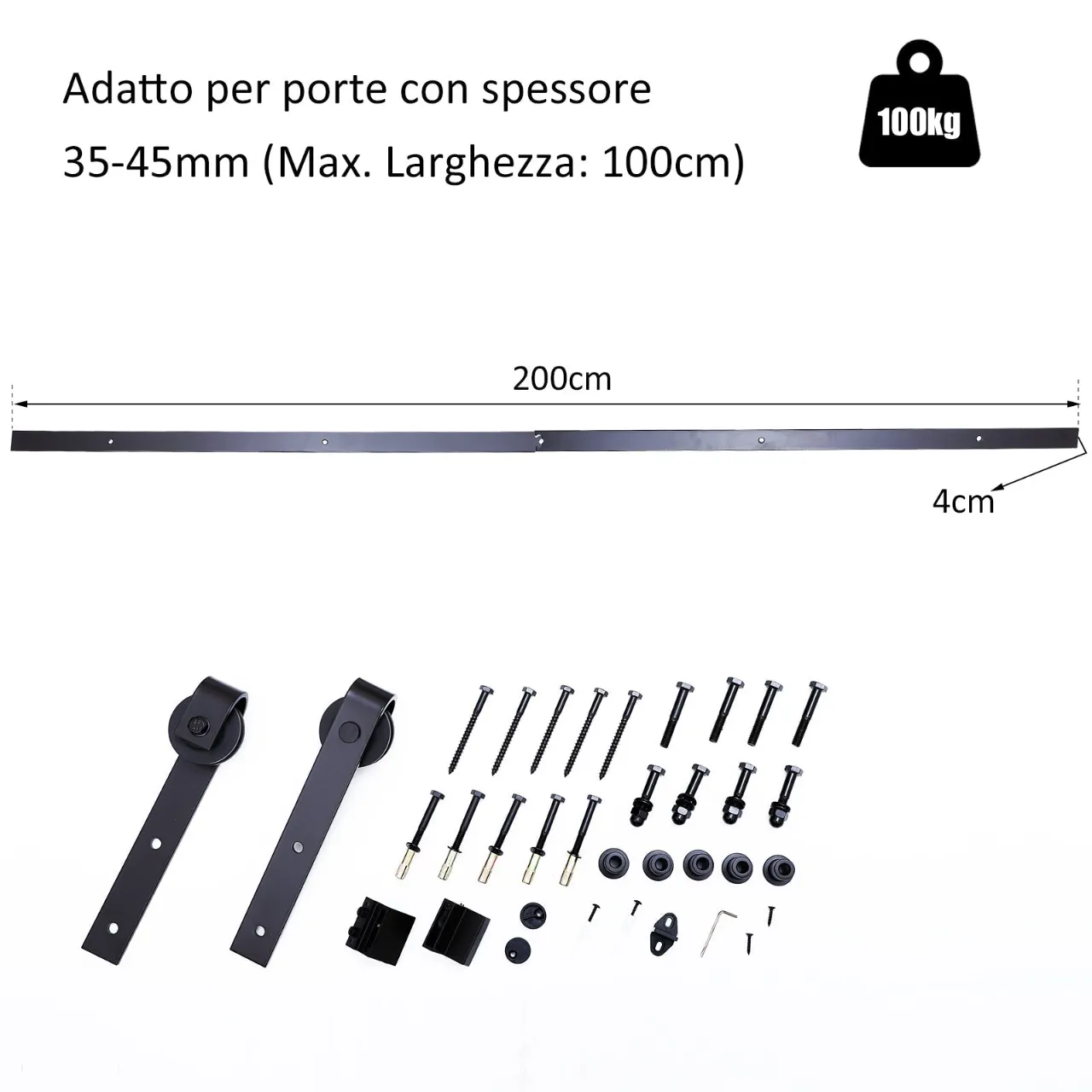 Sliding Doors Assembly Kit with track and carbon steel accessories, 200x4x0.6cm