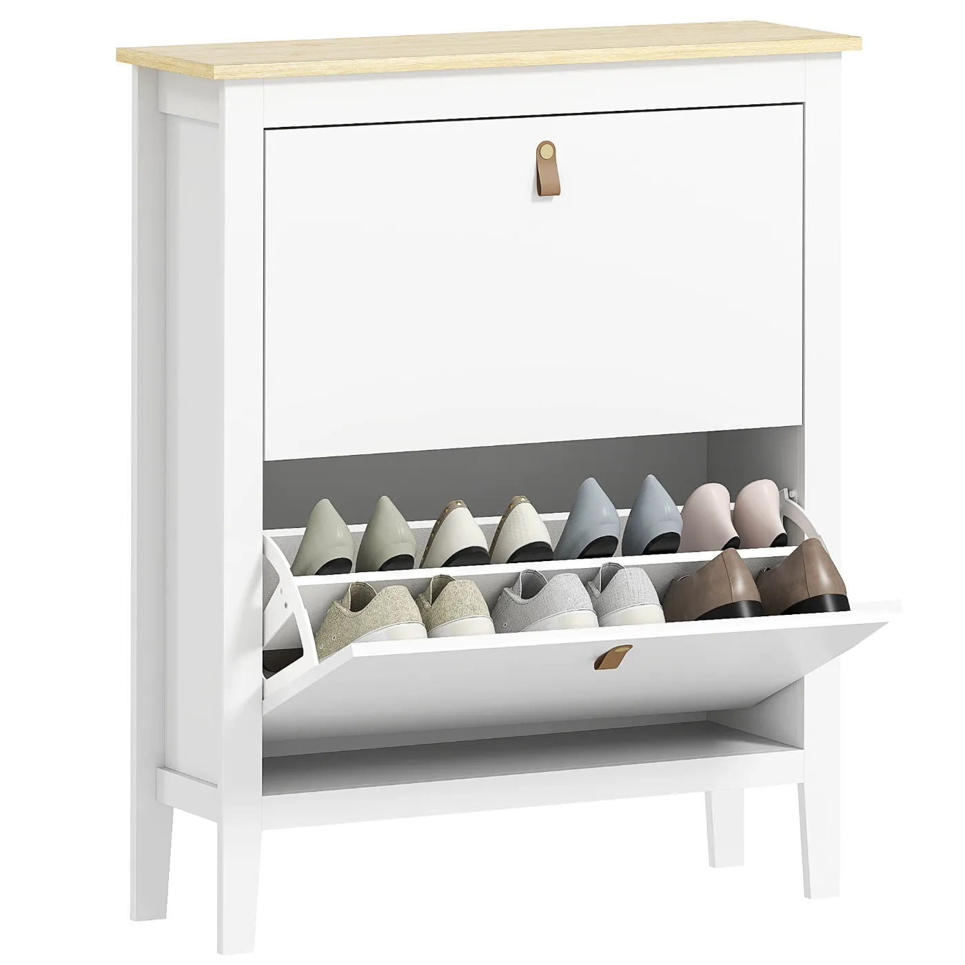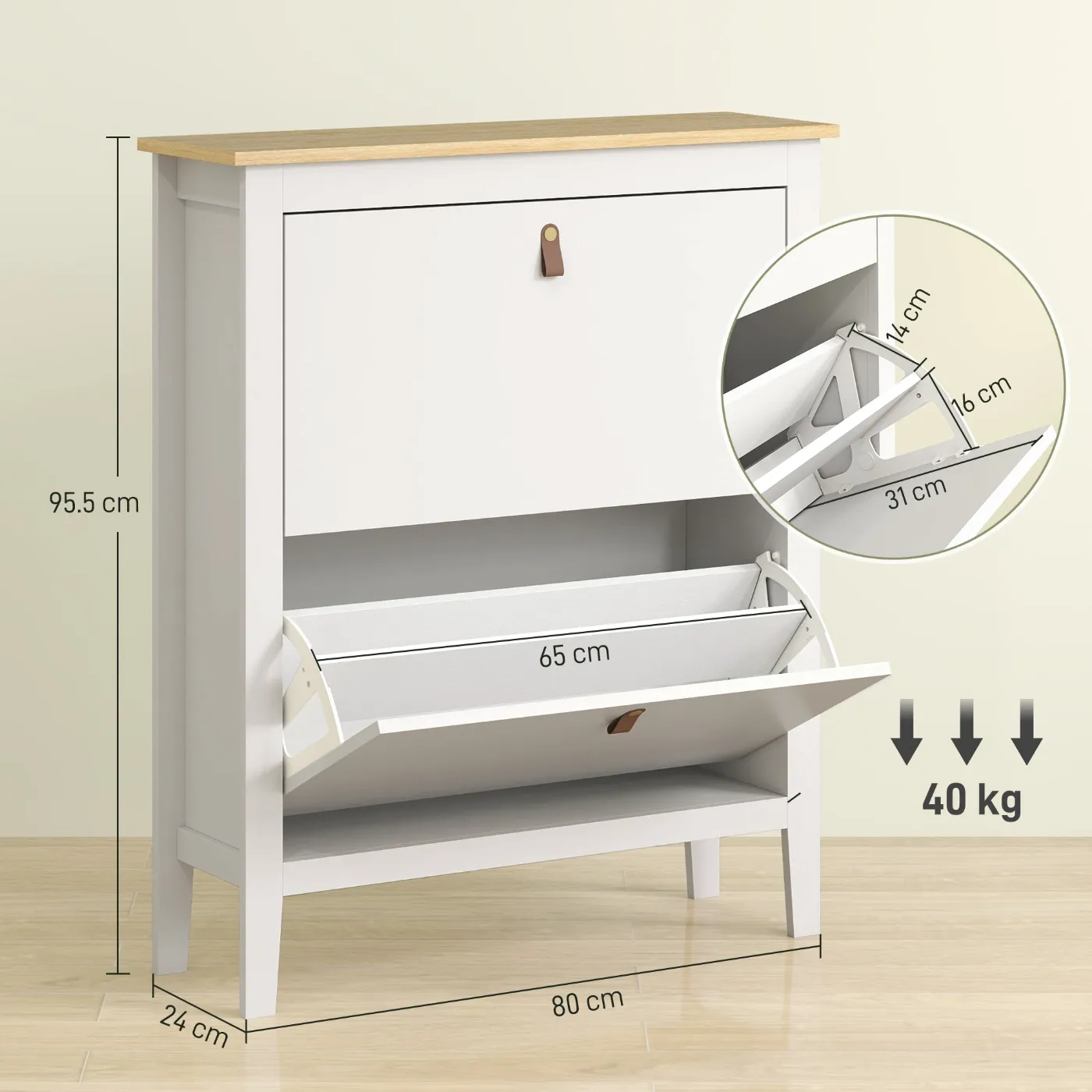 - TWO FLIP-DOWN DRAWERS: Organize your shoes in style with this entryway shoe rack, featuring two flip-down drawers on two levels that can accommodate up to 14 pairs. The 13 cm raised base allows for convenient floor cleaning