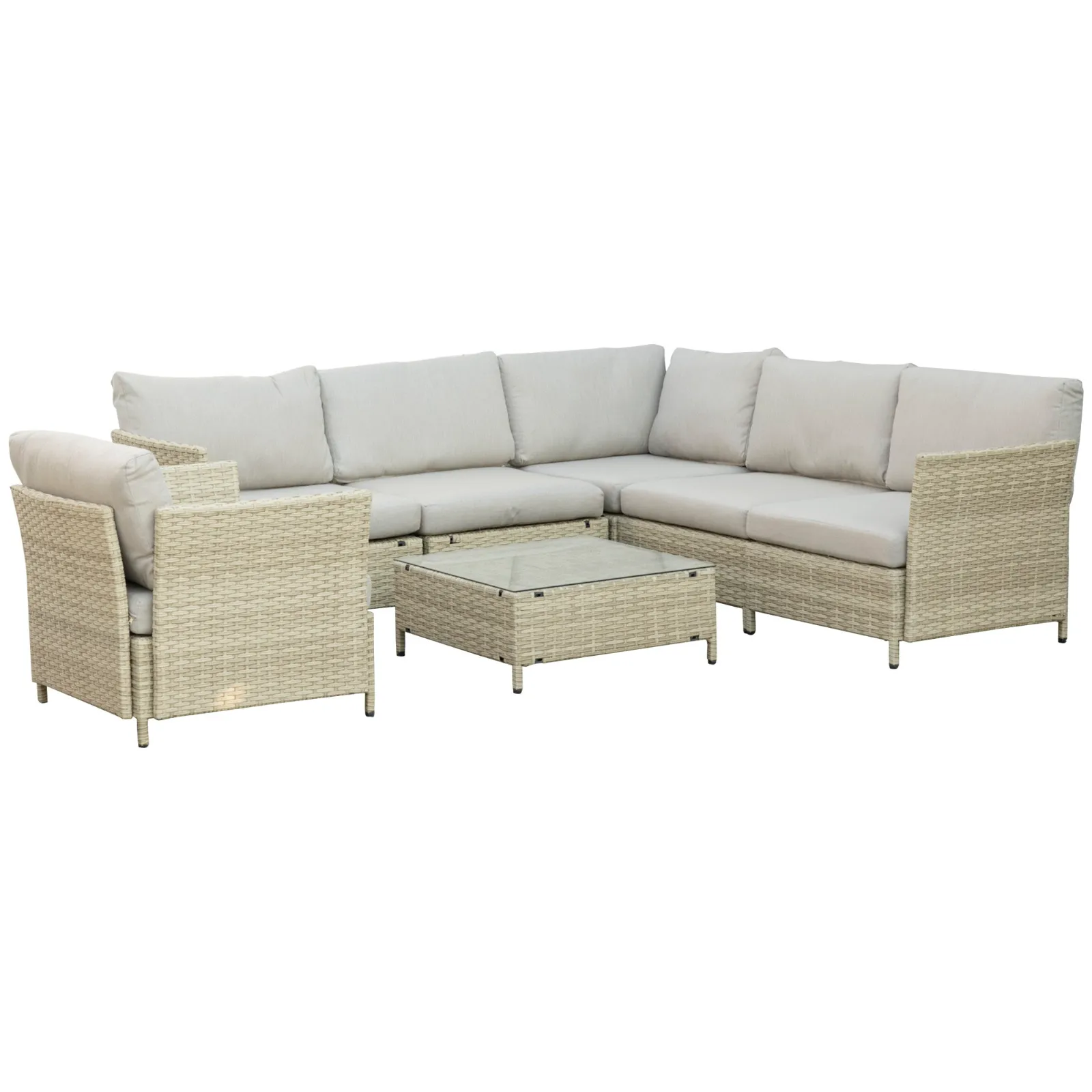 - 7-PIECE GARDEN SET: This outdoor lounge set consists of an armchair, two sofas with a corner armchair without armrests and a coffee table. You can compose the lounge as you like, to adapt it to your spaces and your needs.