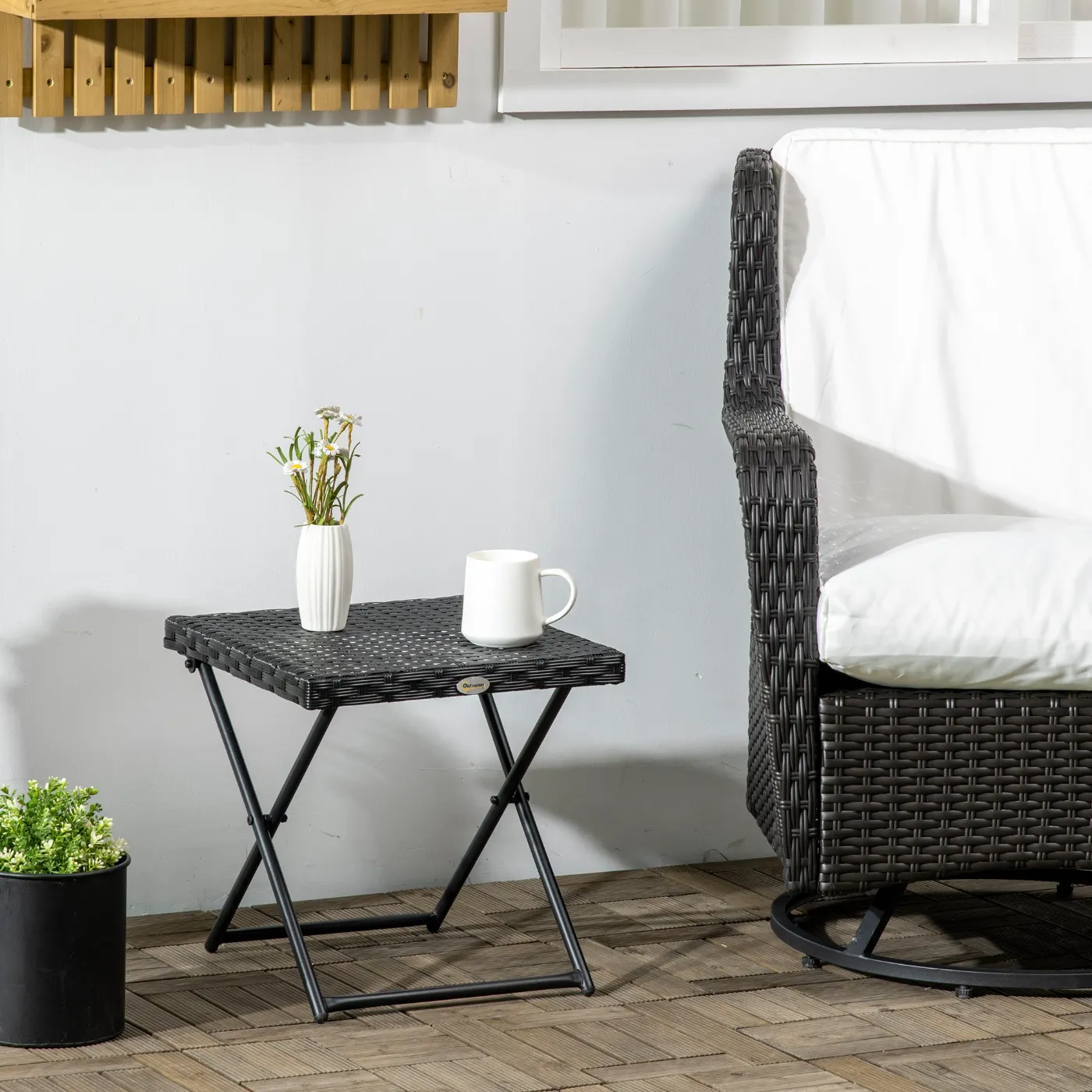 - • Hand-woven PE synthetic rattan, anti-fade and easy to clean