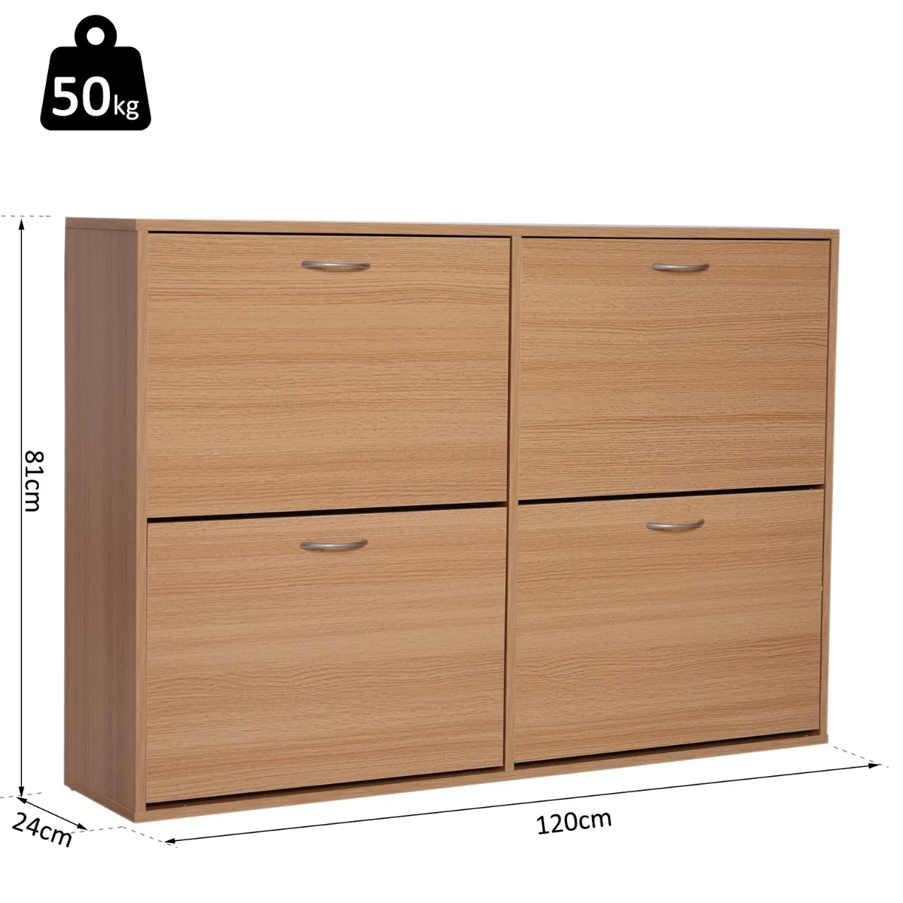 - AMPLE SPACE: Features 4 drop-down drawers with shelf inside each drawer, can hold up to 16-24 pairs of standard-sized shoes. The shelf is perfect for placing vases or ornaments.