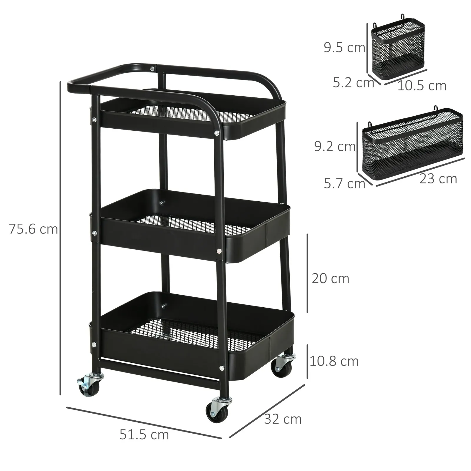 âž¡ï¸ Interior of the basket: 38.6L x 27.2D x 4H cm (upper shelf), 39.6L x 28.2D x 6.5H cm (central shelf), 40.6L x 29.2D x 7H cm (lower shelf )Â