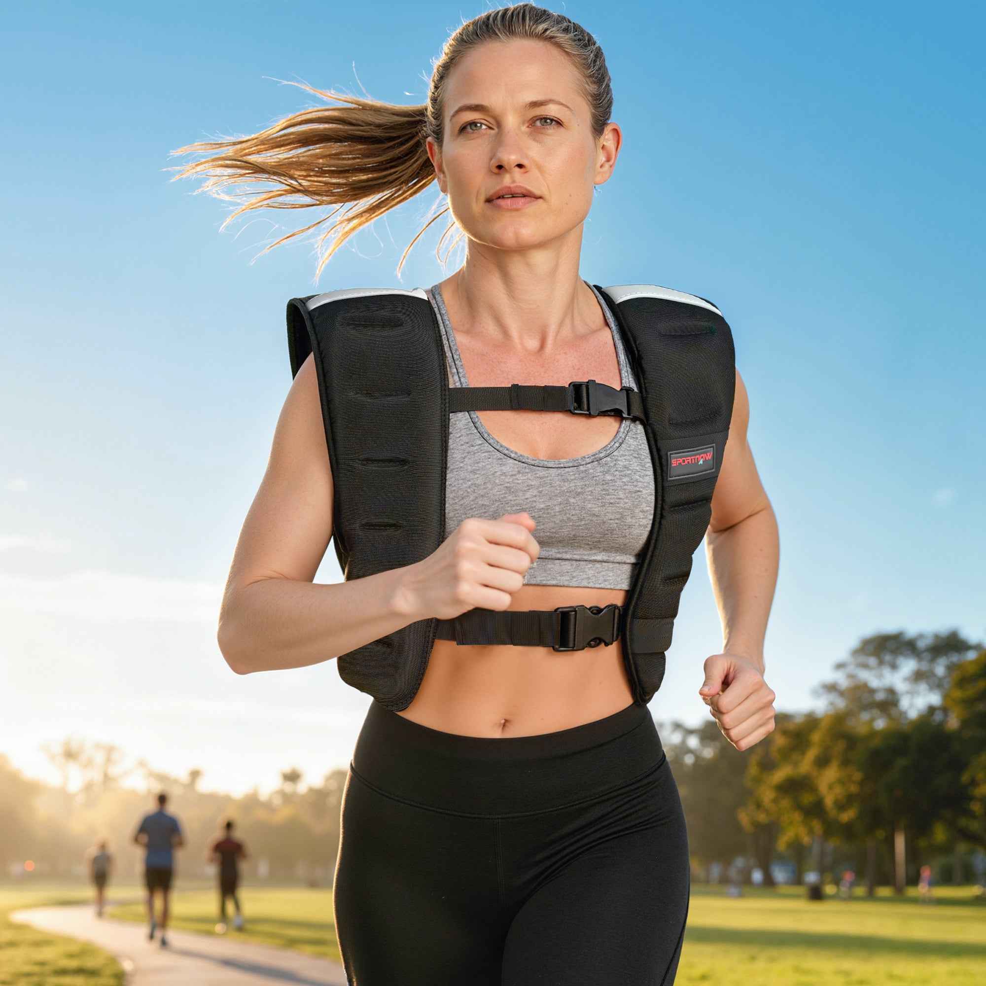 The SPORTNOW 8kg weighted vest made of ventilated neoprene with adjustable shoulder straps ensures a secure and ventilated fit for any type of workout. This vest adapts to your body type and the type of movement you perform, allowing you to focus on your fitness goals with more comfort and stability. Features: • 8 kg weight vest to intensify your daily workouts • Breathable fabric with back vents keeps you cool and comfortable • Adjustable 89-114 cm chest straps ensure a secure fit without bounce • Reflective strips on the front and back of the weight vest increase visibility for safer night runs • Weight vest constructed with solid neoprene and reinforced stitching for long-lasting performance • Versatile design of the weight vest enhances various exercises such as running, push-ups and squats • No assembly required Specifications: • Color: Black • Material: Neoprene, metallic sand • Overall dimensions: 43L x 33D cm • Shoulder width: 43 cm • Neck width: 20 cm • Shoulder strap width: 10 cm • Chest circumference: 89-114 cm • Weight: 8 kg Package contents: • 1 x 8 kg weighted vest • 1 x User manual