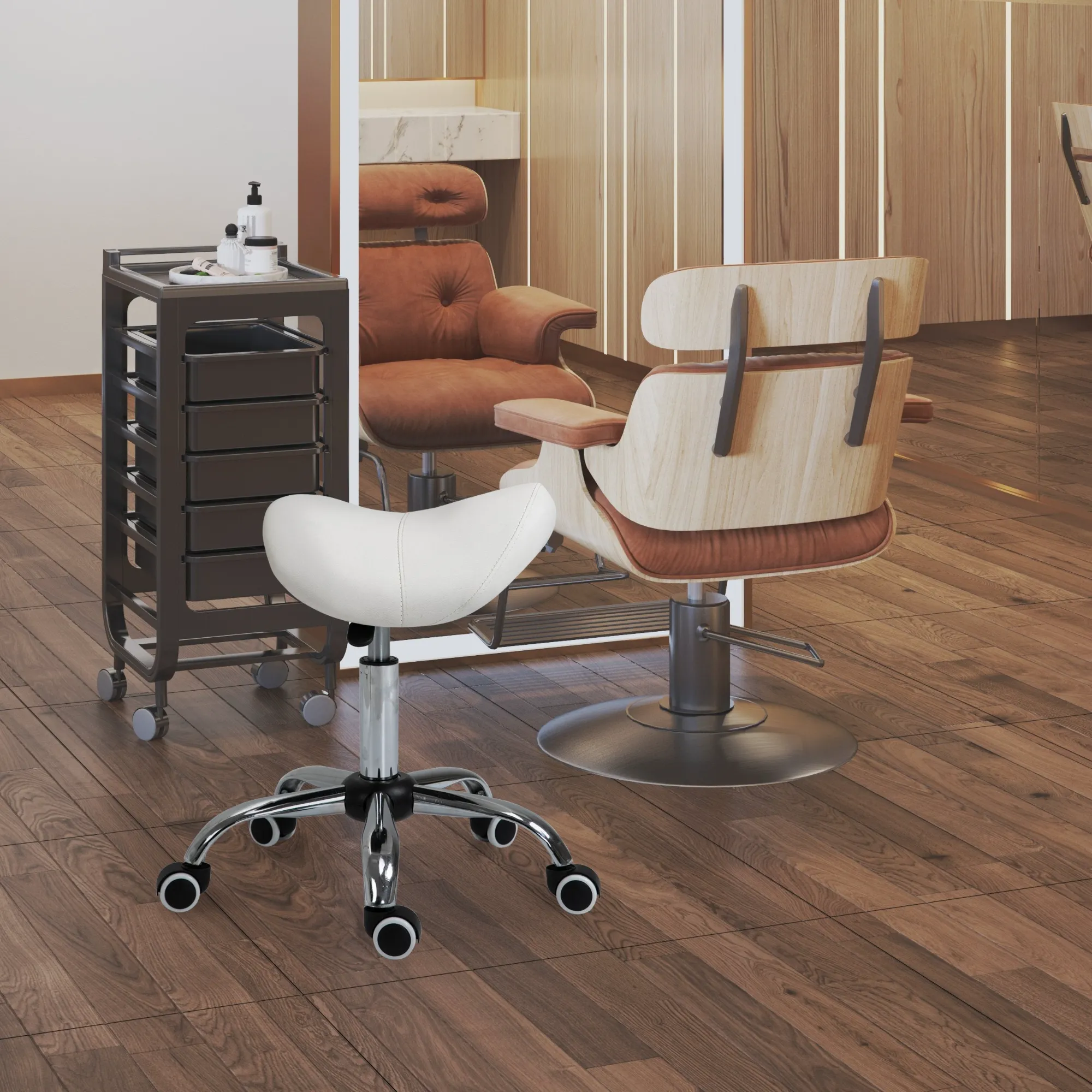 Perfect saddle stool for hairdresser, aesthetic lounge, tattoo shop, and many others