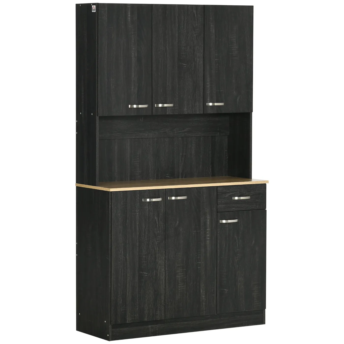 - SPACE AVAILABLE: The shelves of our kitchen cabinet offer ample space for storing plates, pots and pans, while the drawer holds napkins, towels and silverware. The open space in the center can be used to store appliances.