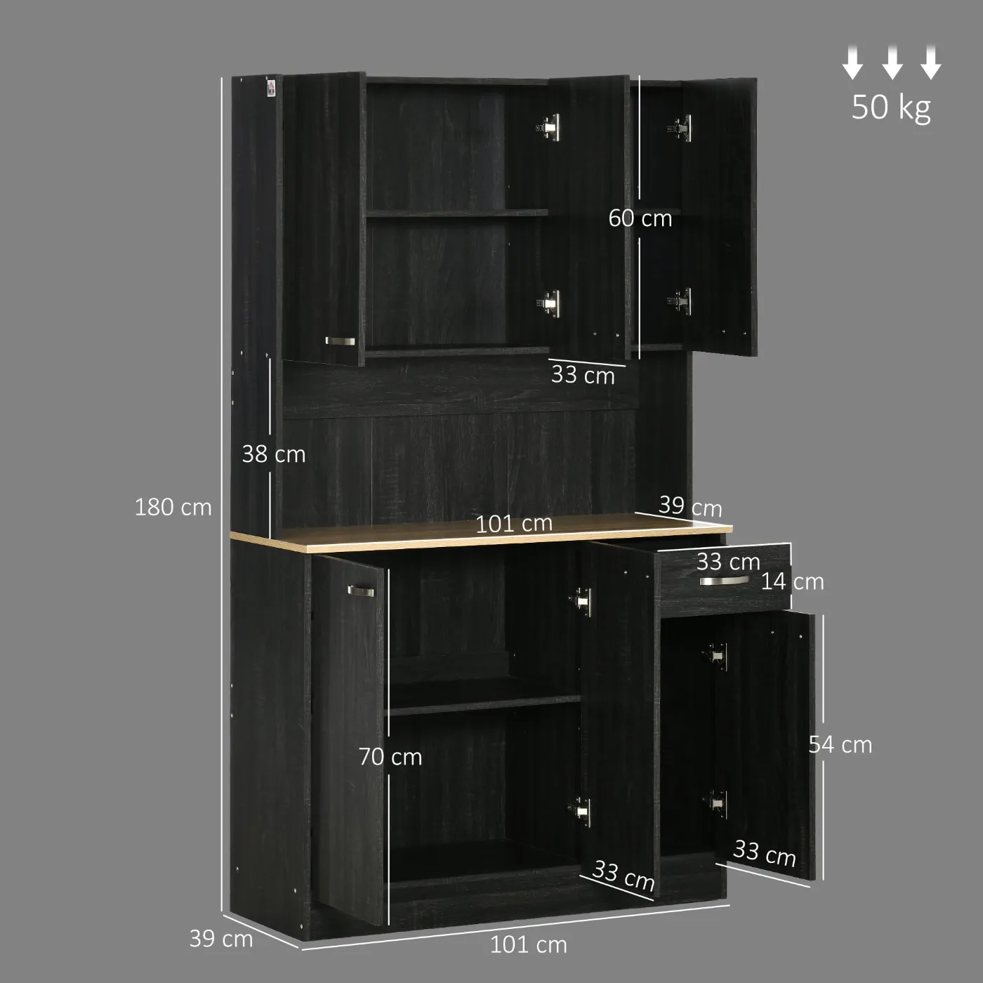 - • Dimensions of the upper door: 33D x 60H cm