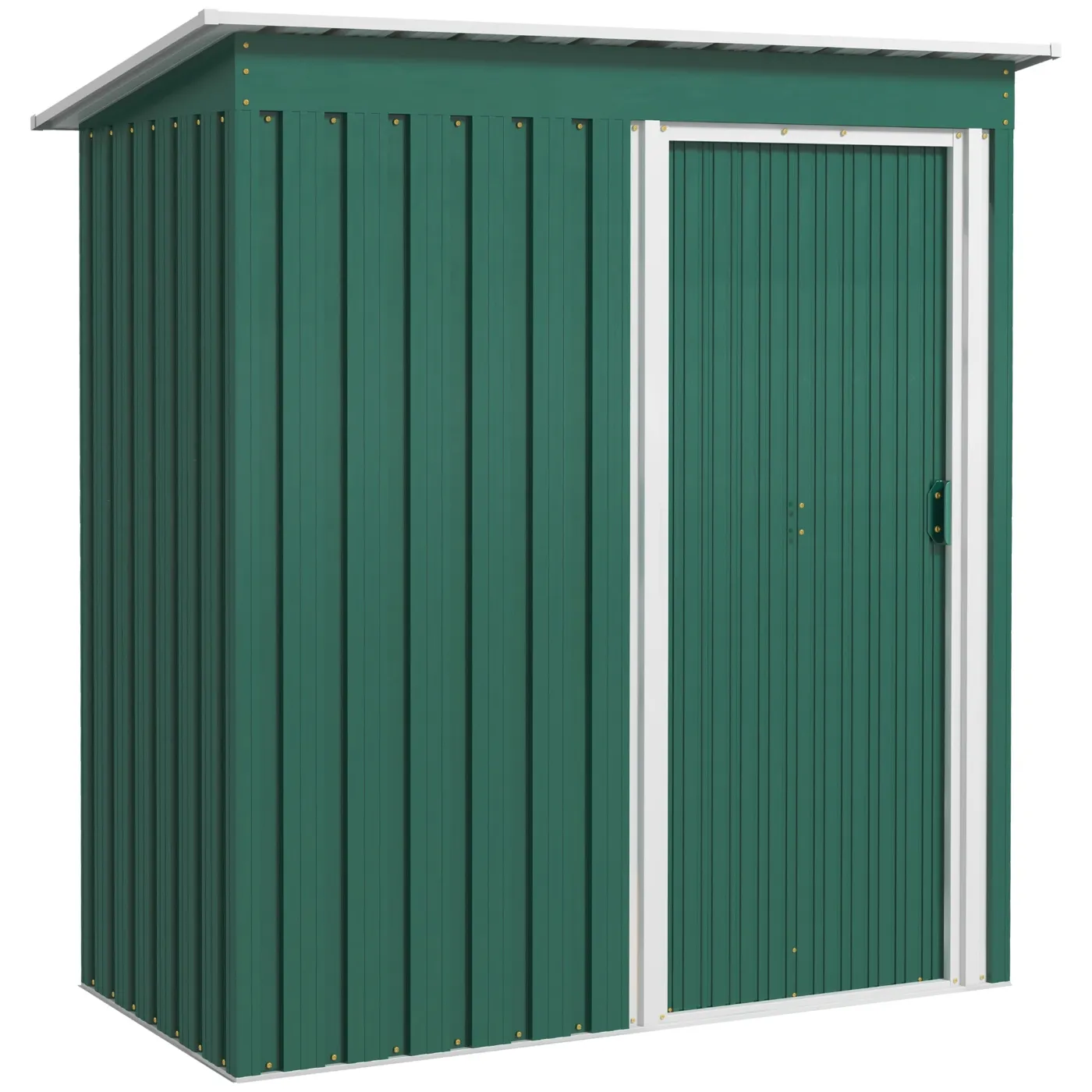- SLOPED ROOF: The sloped roof design prevents water accumulation, keeping the inside of the storage room dry.