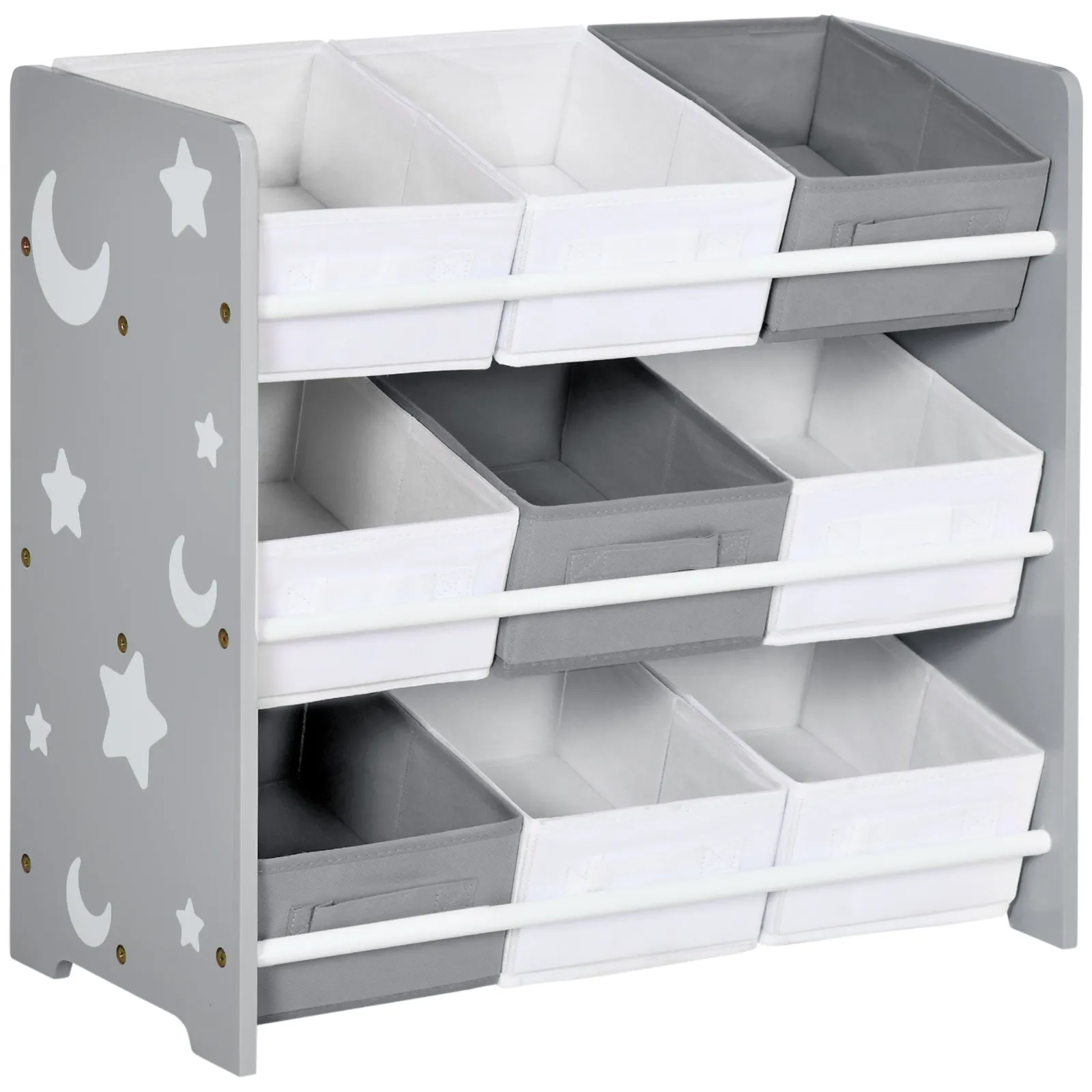 - AMPLE SPACE: The toy cabinet features 3 levels, each with 3 baskets for storing toys, books, clothes and much more.