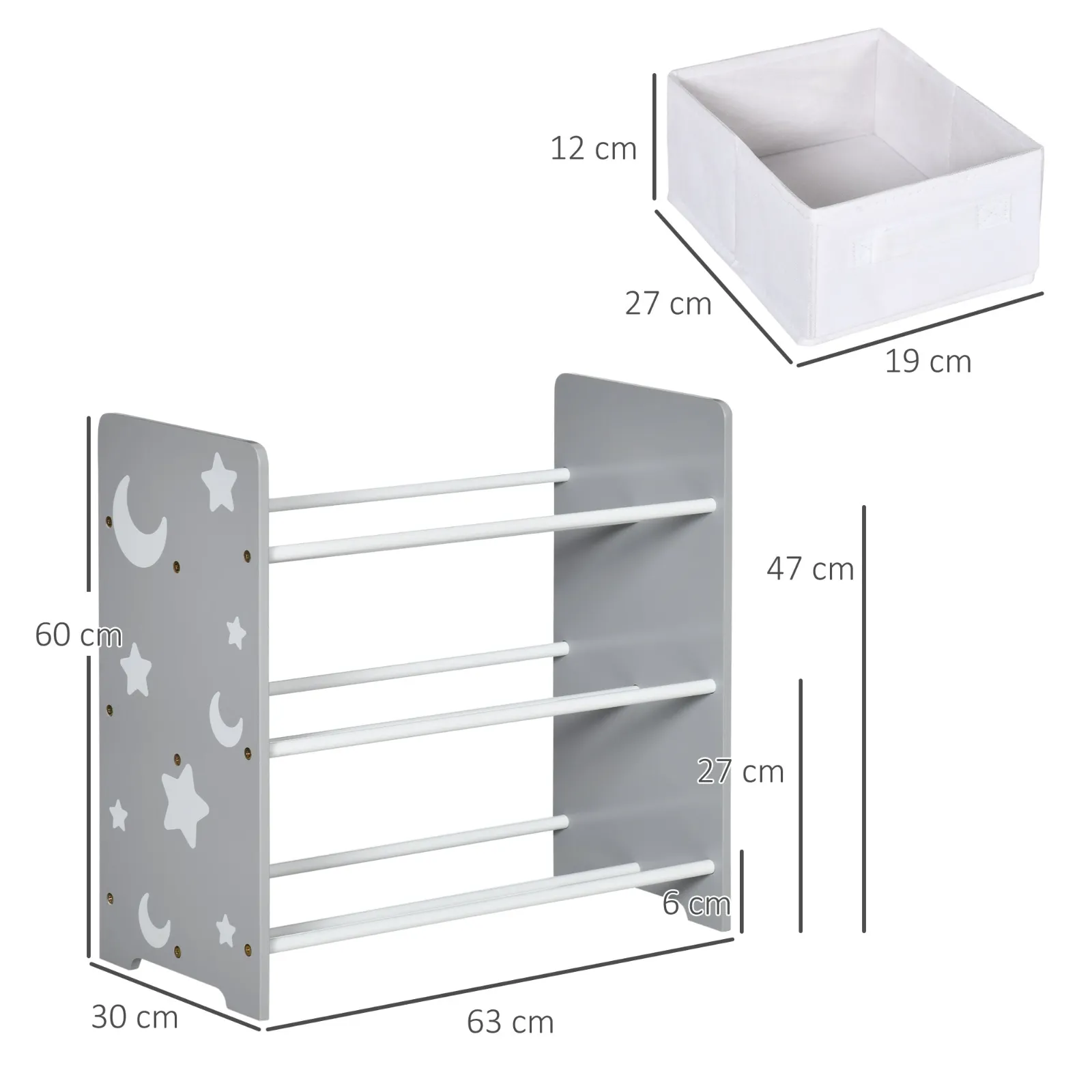 - DIMENSIONS: Overall dimensions: 63L x 30D x 60H cm. Weight capacity: 5 kg (basket). For children aged 3-6 years. Assembly required.