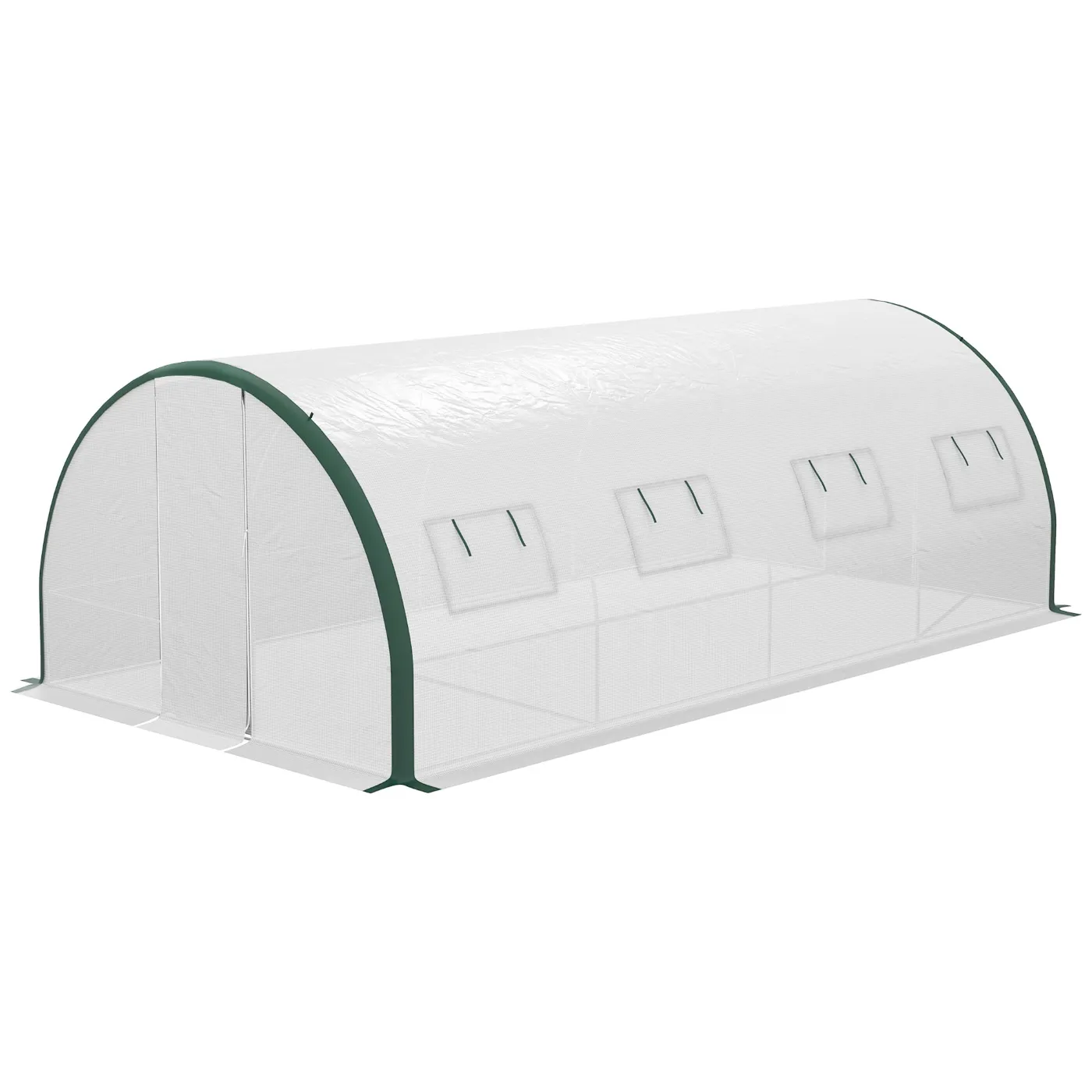Tunnel Greenhouse 6×3 m with 2 Entrances and 8 Windows, in PE, Polyester and Galvanized Steel, White and Green