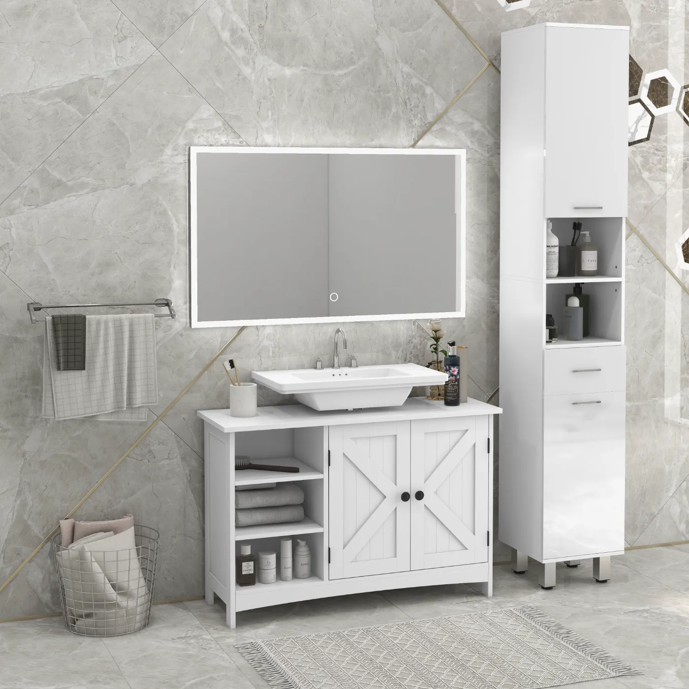 - • 2-door cabinet to neatly store all your bathroom products