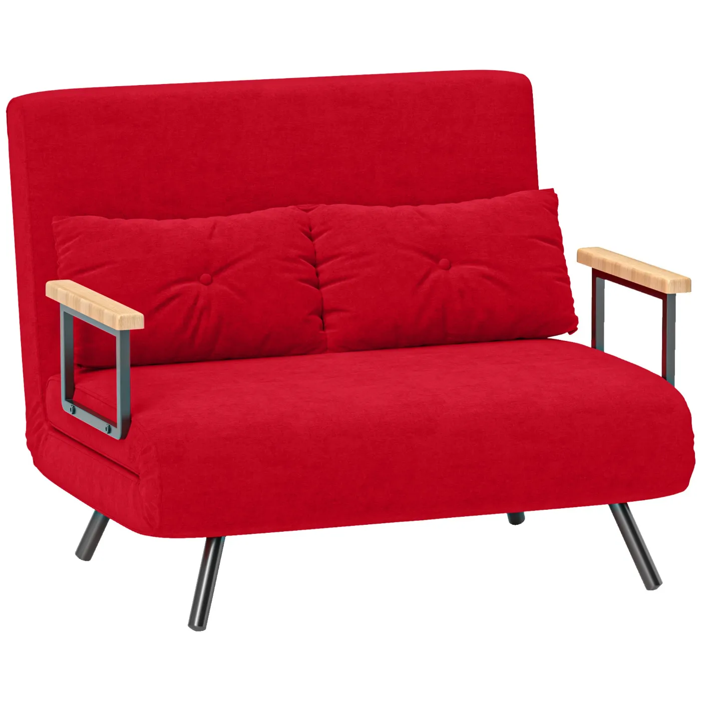 - • Double sofa bed with steel frame and wooden armrests included