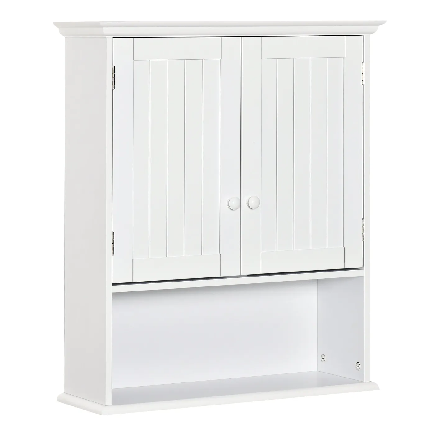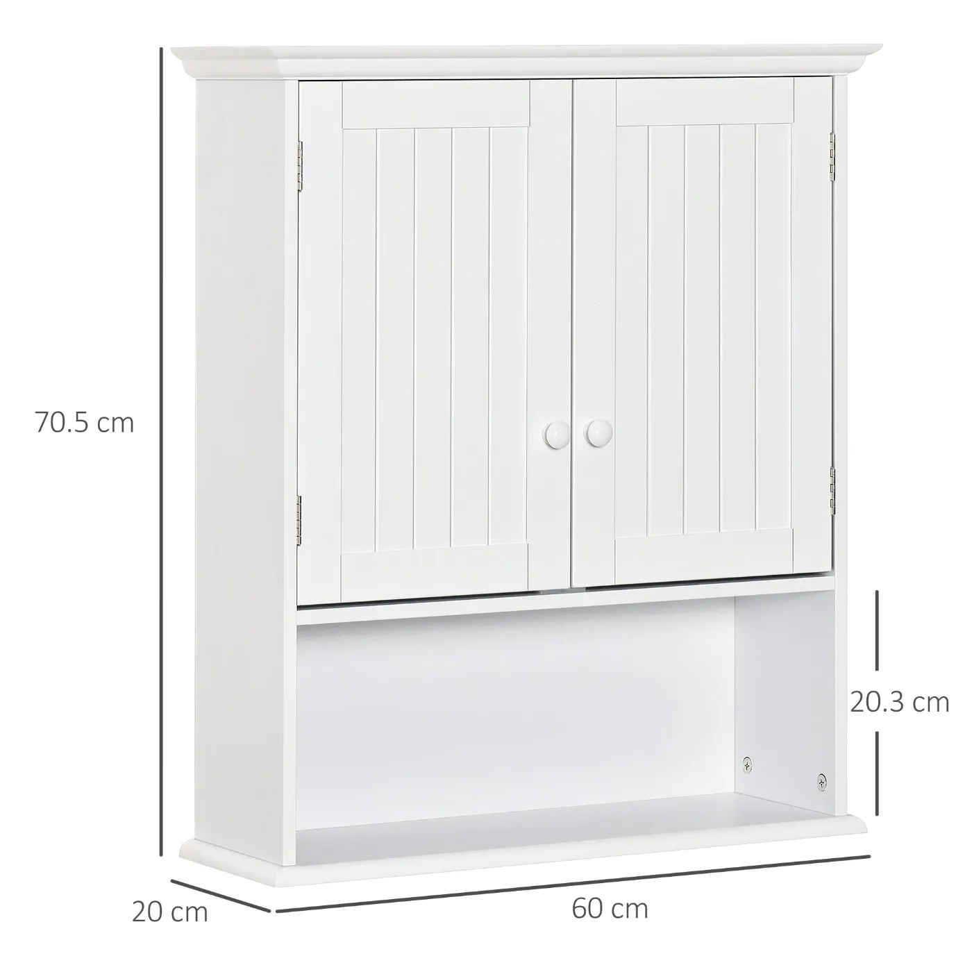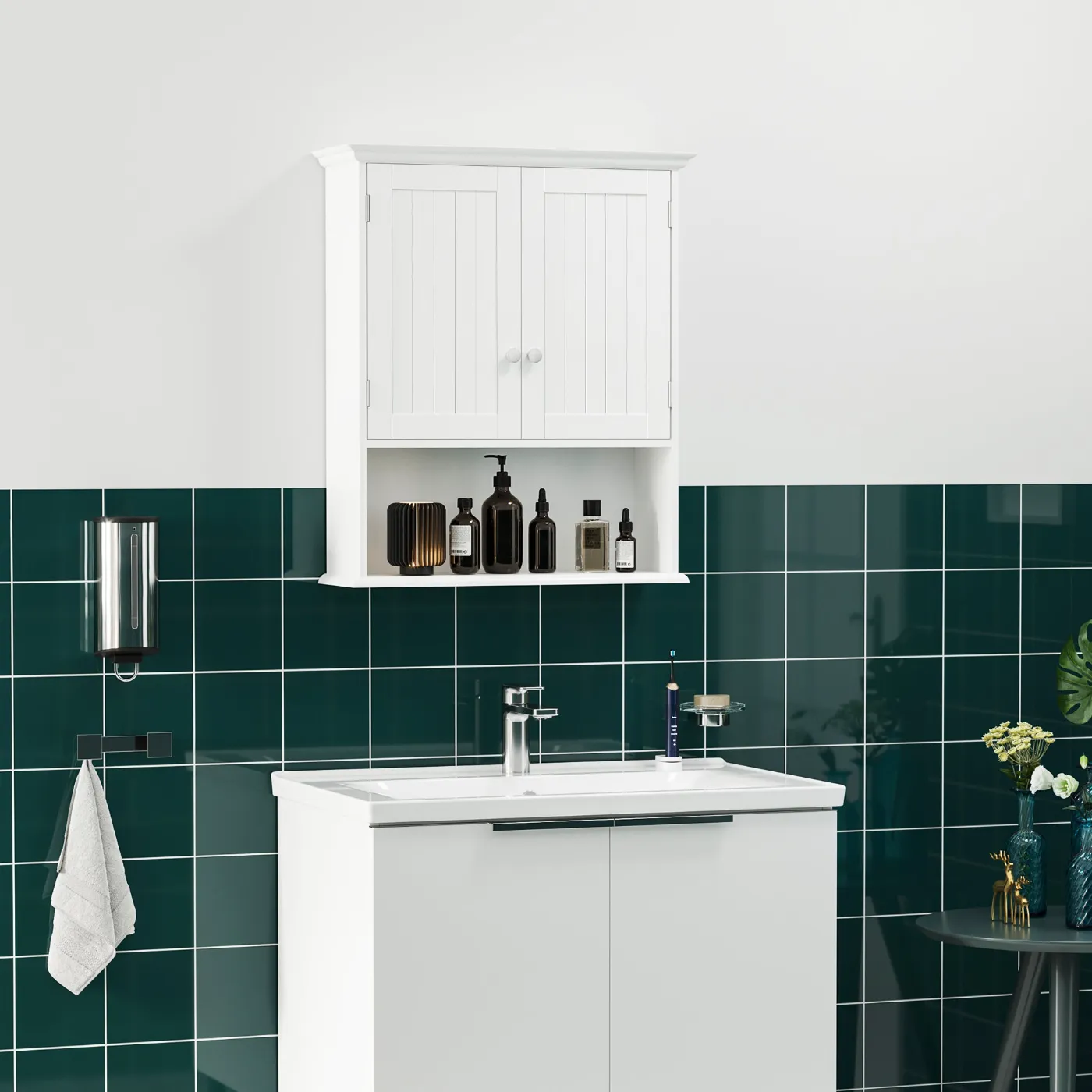 Wall-Mounted Bathroom Cabinet with 2 Doors and Open Shelf, Adjustable Internal Shelf, White