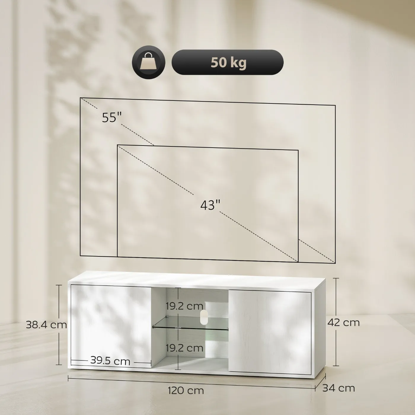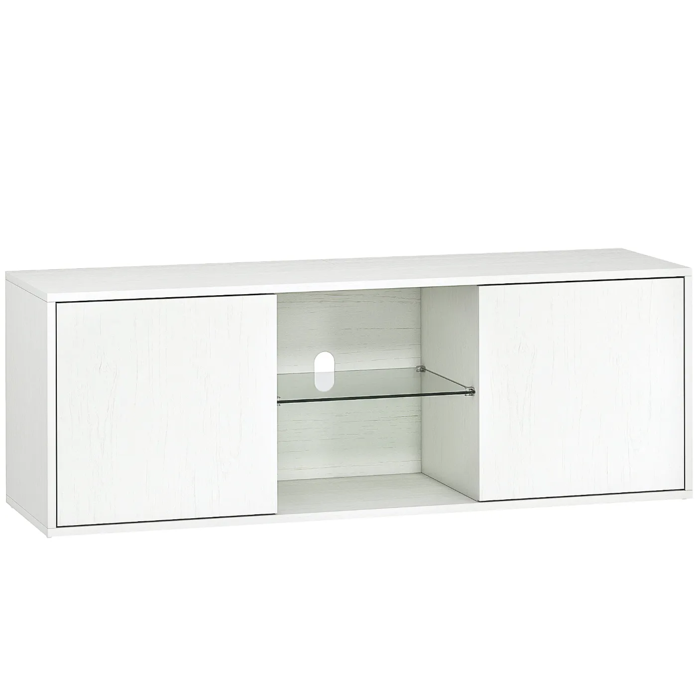 - MODERN STYLE: This 120cm wide floating TV stand is perfect for 43 to 55 inch TVs, combining bright white with a warm wood effect to create a relaxing and stylish focal point for your evenings at home