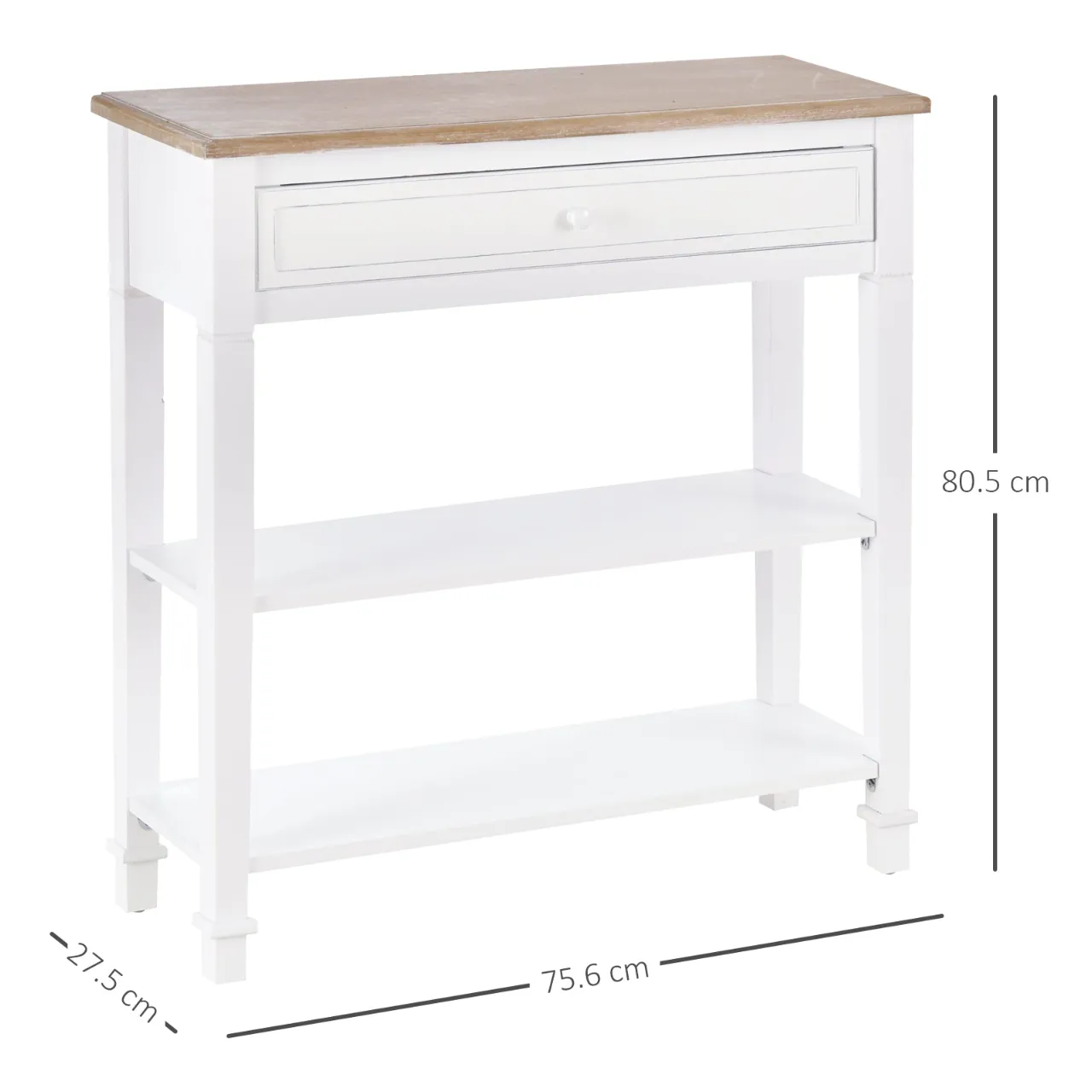 - FOR THE ENTRANCE AREA: Tidying up the entrance area is easier with your new HOMCOM console table. Finally, you have plenty of space available for your accessories: a drawer measuring 59.3L x 38.2D cm and two shelves measuring 72.6L x 24.2D x 1.5H cm.