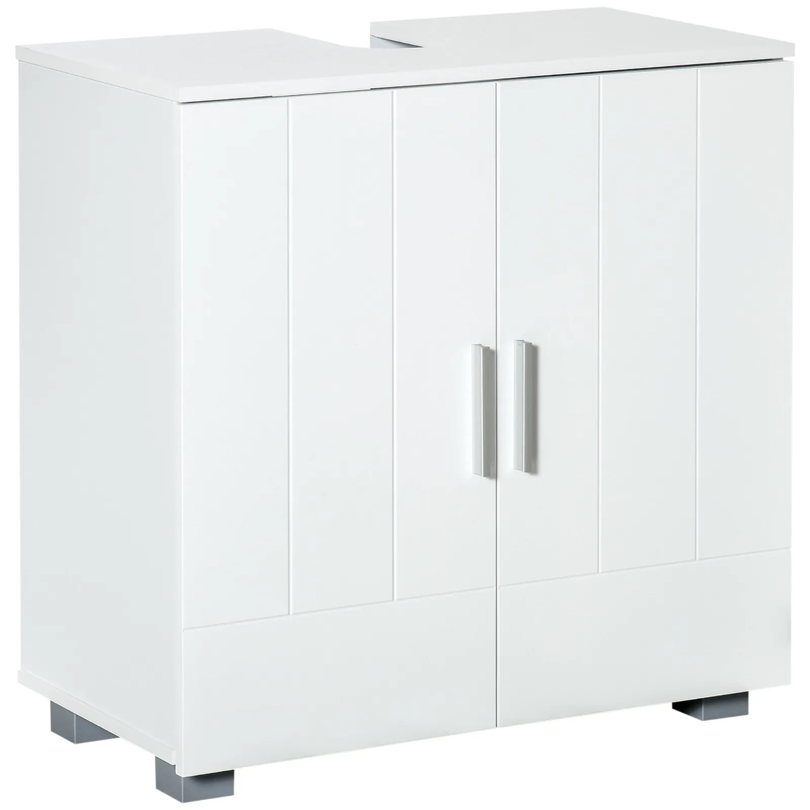 This Kleankin bathroom cabinet is perfectly sized to fit beneath a raised sink, offering practical and simple storage solutions. The MDF structure is durable, and the waterproof surface is easy to clean. Adorned with a ‘u’ carving, this cabinet is sure to adapt to any design style and give your bathroom the extra organized space it needs. Specifications: Colour: white | Material: MDF | Dimensions: 60l x 30p x 60acm | Slip A: 10L x 17pcm | Internal shelf size: 57.5L x 28p x 53.5acm | Max load: 15kg (total) 5kg (shelf). Includes: Bathroom cabinet & instruction manual.